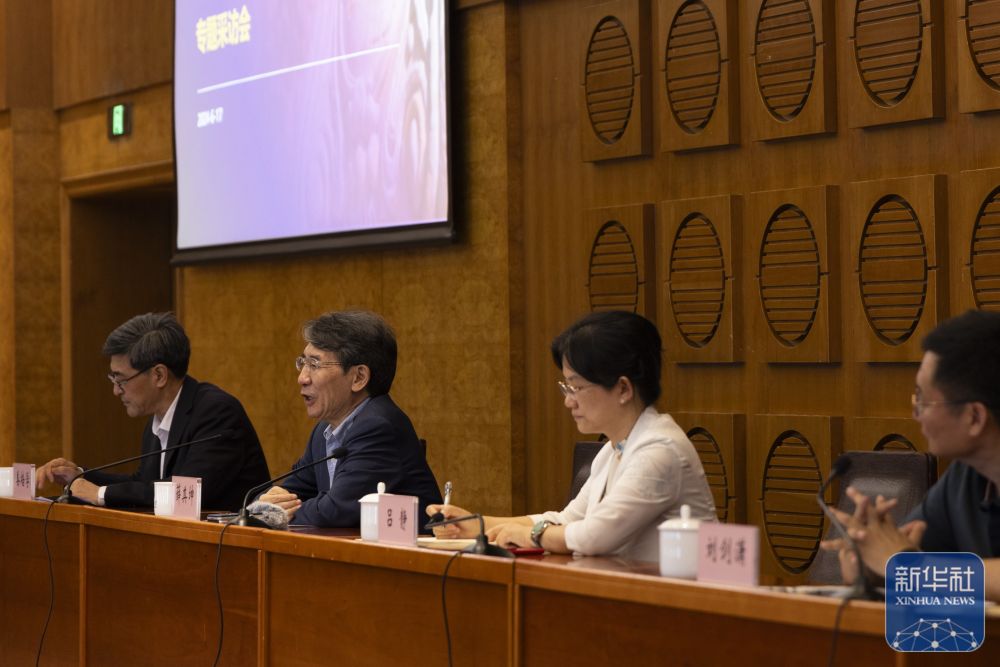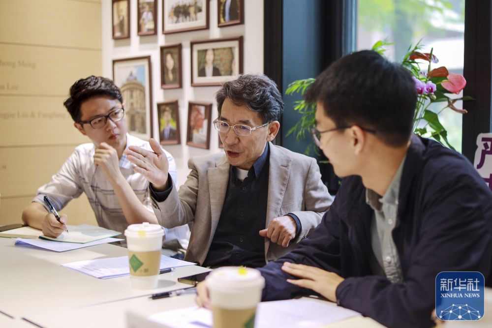 ↑2024年6月17日,薛其坤(左二)在清华大学接受集体采访。新华社记者 金立旺 摄