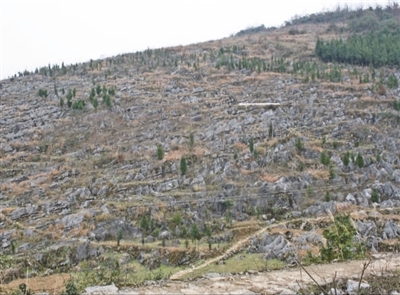 2008年,重庆市彭水苗族土家族自治县靛水街道文武社区进行石漠化治理前。 李继晖摄(人民视觉)