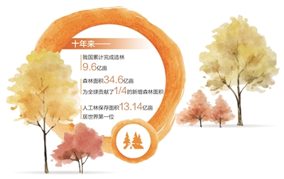 党的十八大以来,我们坚持绿水青山就是金山银山的理念,全面加强生态文明建设,推进国土绿化,改善城乡人居环境,美丽中国正在不断变为现实。全国动员、全民动手、全社会共同参与,我国累计完成造林9.6亿亩,近十年为全球贡献了1/4的新增森林面积;森林面积和森林蓄积量连续保持“双增长”。林草资源总体呈现数量持续增加、质量稳步提高、功能不断增强的发展态势。全国绿化委员会印发《全国国土绿化规划纲要(2022—2030年)》,明确“十四五”期间全国规划完成造林种草等国土绿化5亿亩,治理沙化土地面积1亿亩。