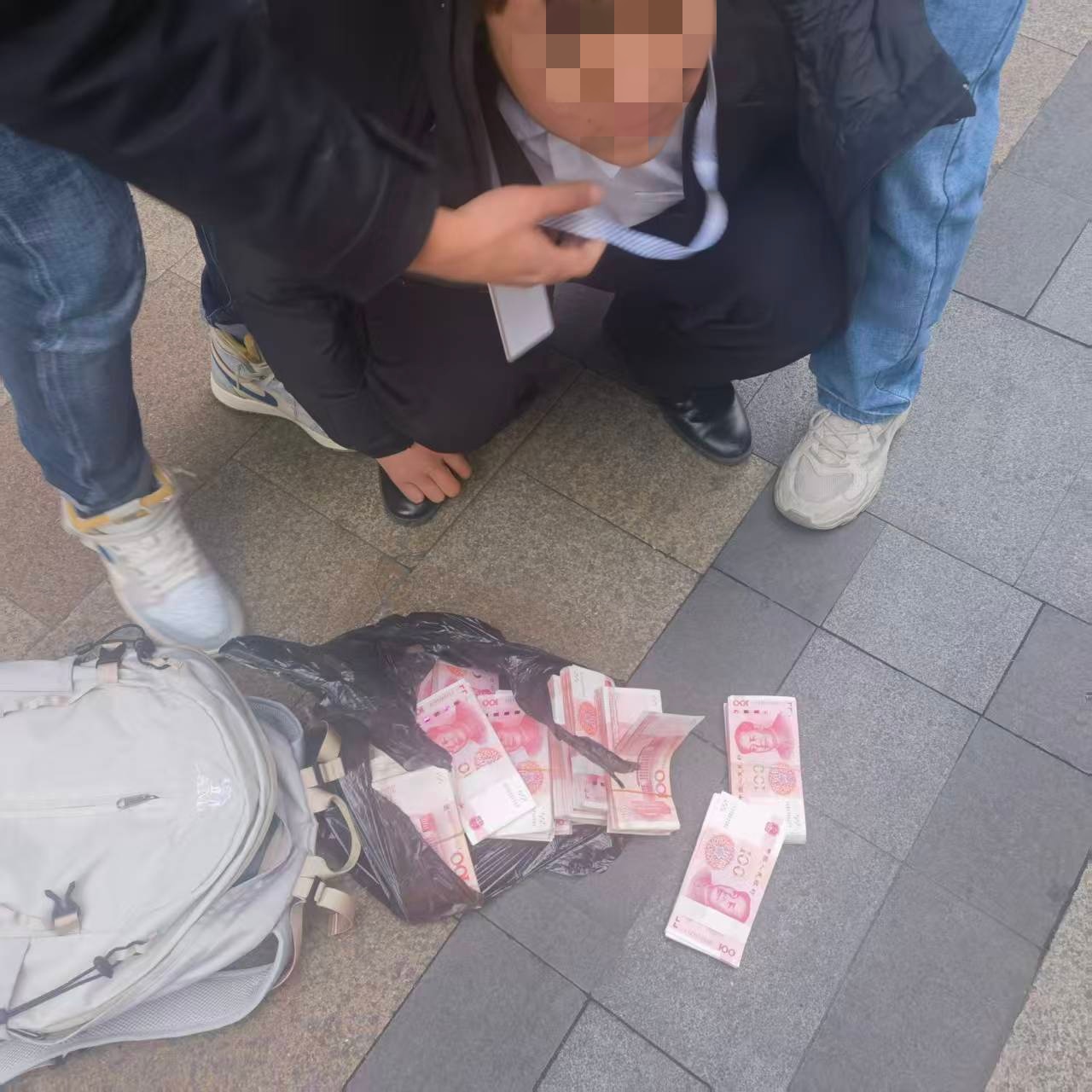 1月19日下午2点16分,成都温江公安分局反诈中心接到预警,辖区内陈女士遭遇电信网络诈骗,立即组织警力前往现场进行排查。民警很快在小区门口,发现一名西装革履背着双肩包的可疑男子。经研判确认,该男子就是联系陈女士的取现人员。随后,民警将其挡获,现场查获涉案现金21万元,从发案到破案不到20分钟。