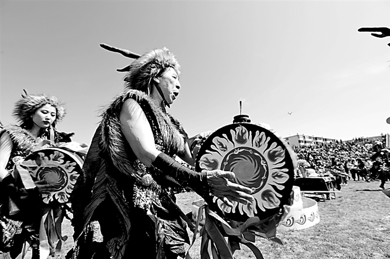 黑龙江省饶河县在乌日贡节上举办伊玛堪表演。光明图片/IC Photo