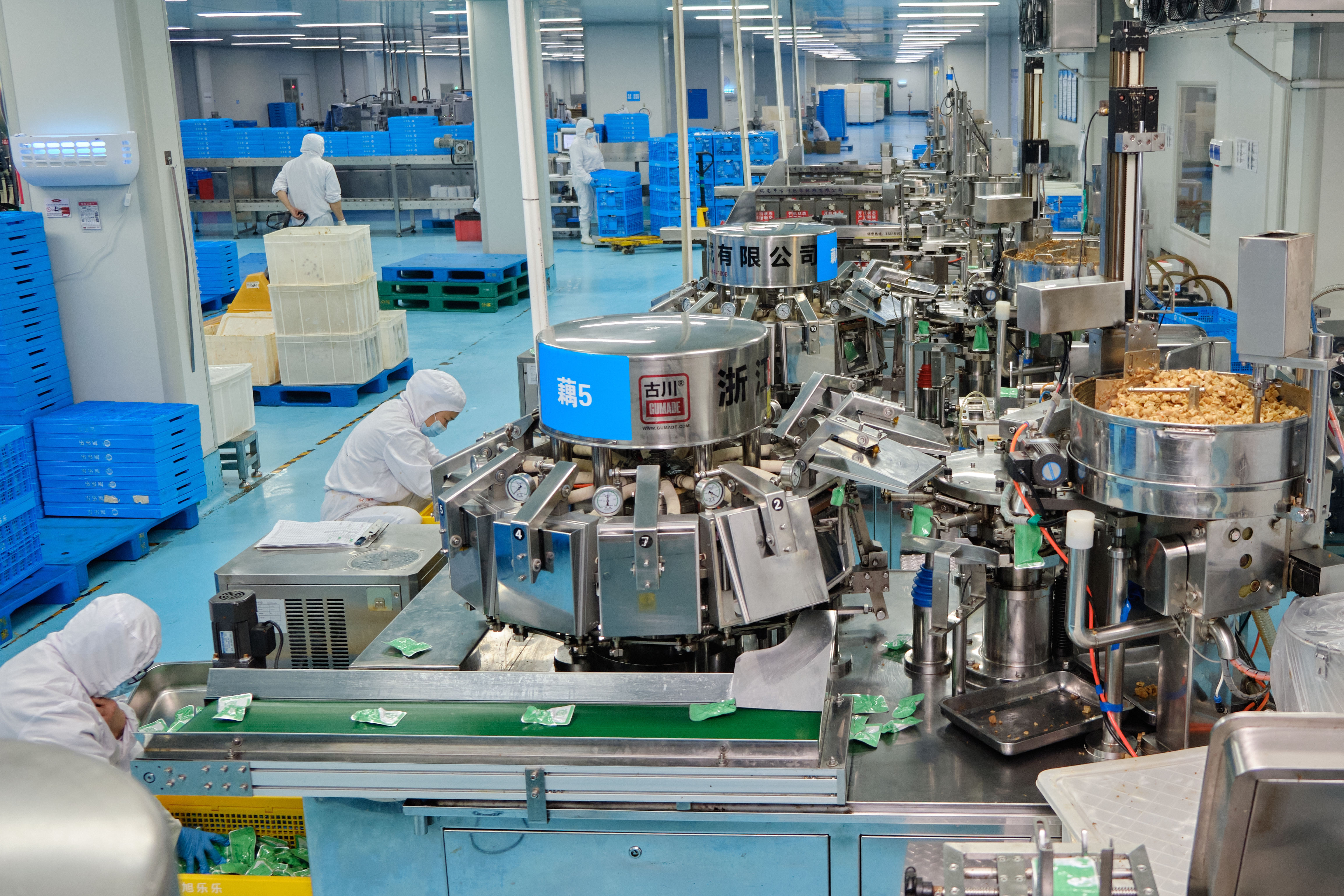 其中的“卤制”工序,最为关键,也最为神秘——如果说清洗、杀菌等是为了保证洁净健康的话,那么卤制则为良品铺子卤藕系列产品注入了“灵魂”。