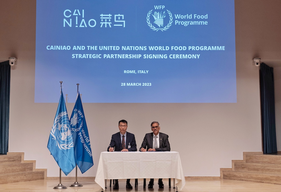 罗马当地时间3月28日,菜鸟与联合国世界粮食计划署(WFP)在罗马签署了全球物流合作协议。双方将在全球人道主义紧急行动和提升供应链能力等领域开展为期3年的战略合作。这也是中国物流公司首次成为世界粮食计划署的全球物流合作伙伴。