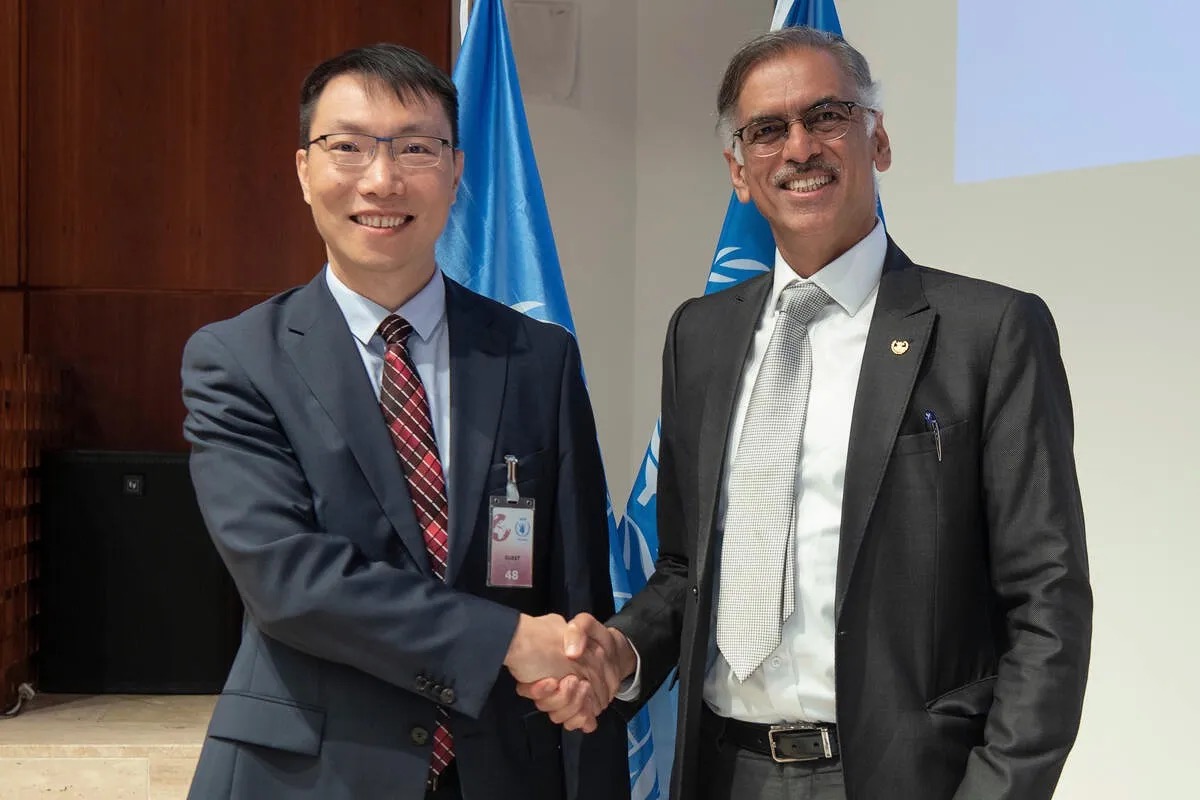 菜鸟CEO万霖(左)与世界粮食计划署副执行干事曼诺吉·朱内贾(Manoj Juneja)(右)在罗马签署全球物流合作协议。