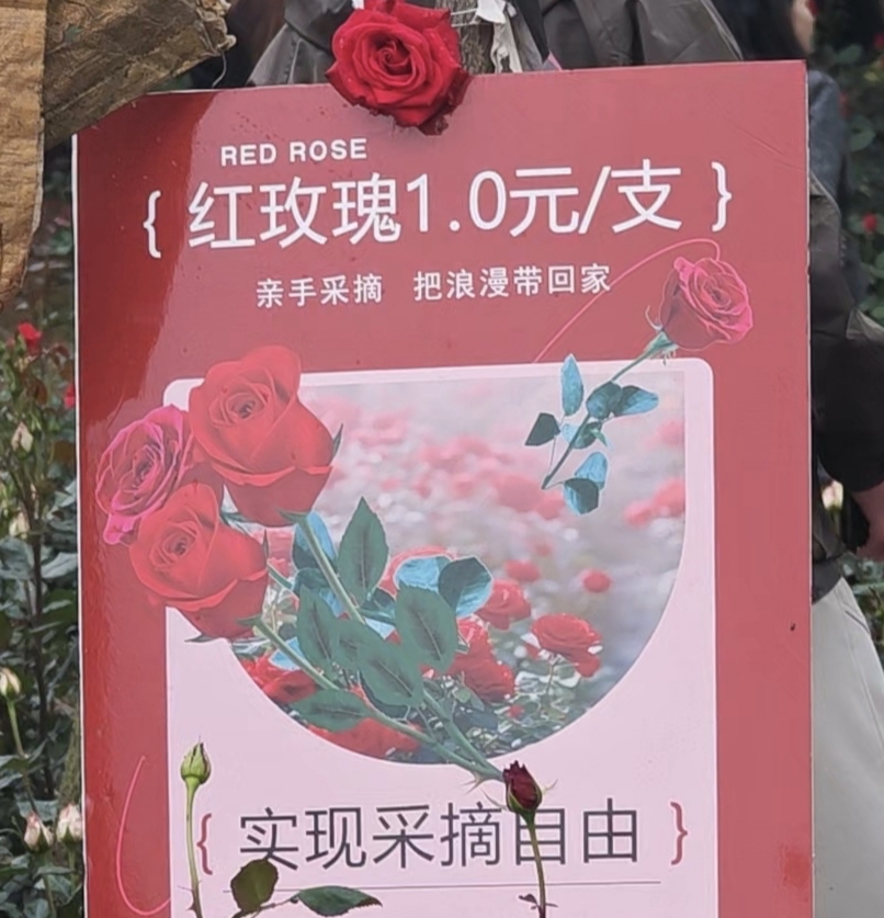 一位从眉山专程赶来的游客王女士感叹道:“1元1朵,实现‘玫瑰自由’,拍照也很出片。”也有游客一边修剪着玫瑰一边说:“自己动手,丰衣足食。大爷太辛苦了,一整天都没停下来过,让他休息一下,我们自己来。”
