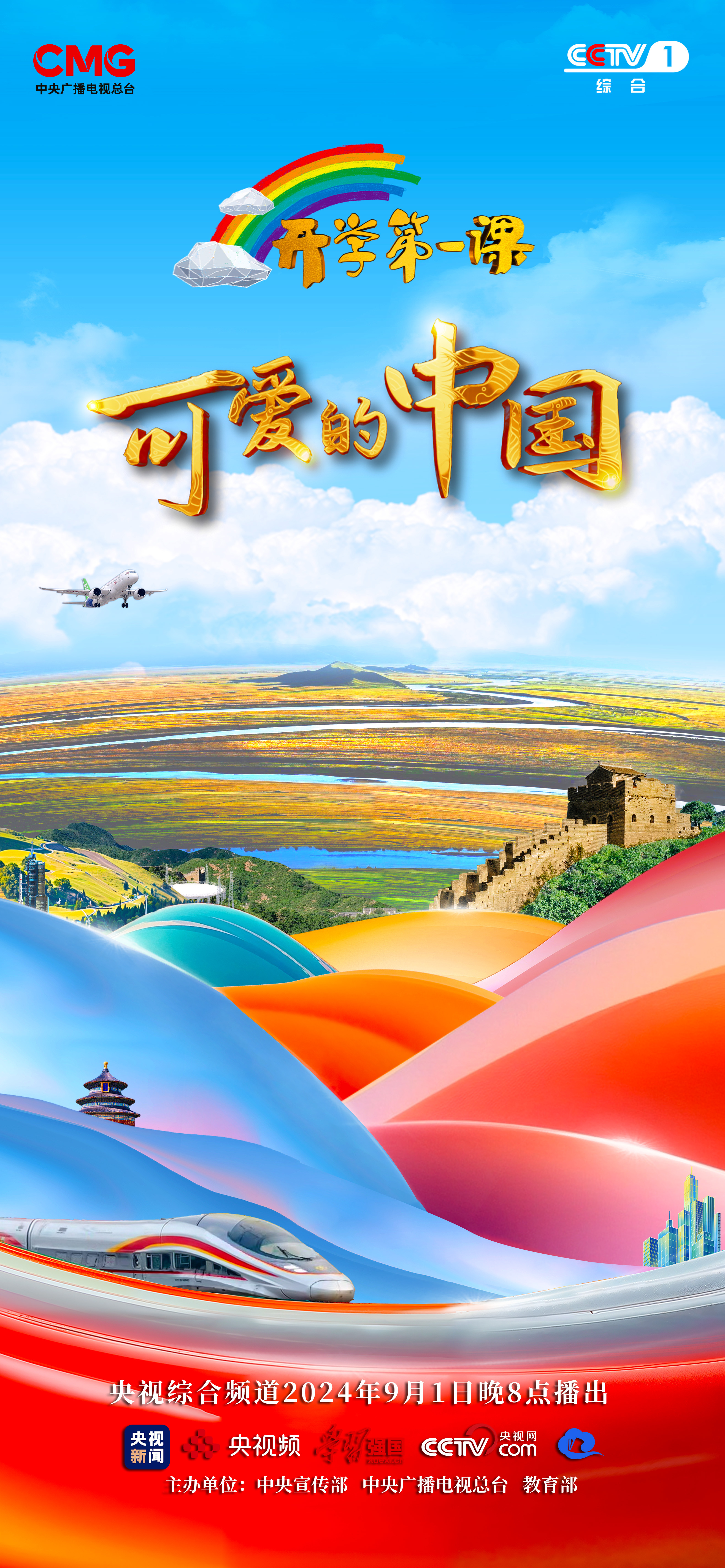 9月1日晚8点,2024年《开学第一课》将在中央广播电视总台央视综合频道(CCTV-1)播出,并在央视新闻客户端、央视频、学习强国学习平台、国家中小学智慧教育平台同步直播。让我们一起,通过这堂特殊的课,一同领略可爱的中国,感受中国式现代化建设的磅礴力量!