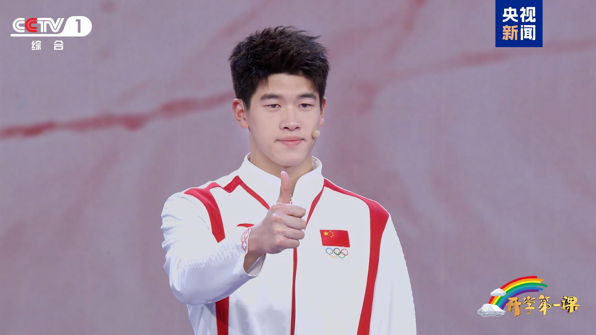 追梦路上,青春激荡时代强音。奥运赛场上,中国体育健儿用汗水和荣耀弘扬着奥林匹克精神和中华体育精神。在《开学第一课》现场,00后游泳新星潘展乐分享了自己从“看台观战选手”到奥运冠军的蝶变历程,并留给同学们朴实有力的寄语:请你们毫无保留地把自己献给你们所热爱的事。