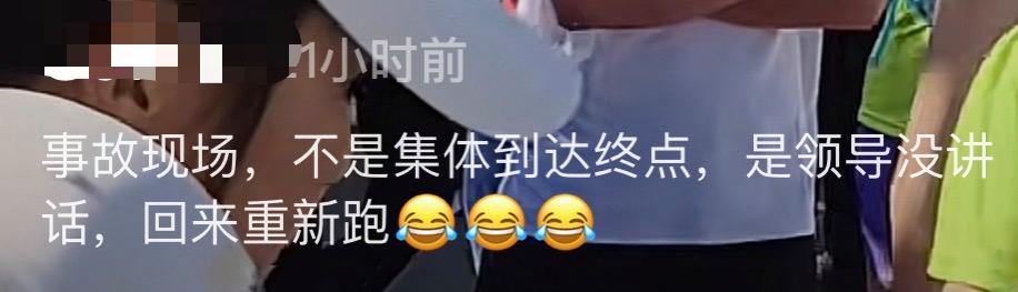 ▲网友表示:不是集体到终点,是领导没讲话,回来重新跑。 图/网络截图