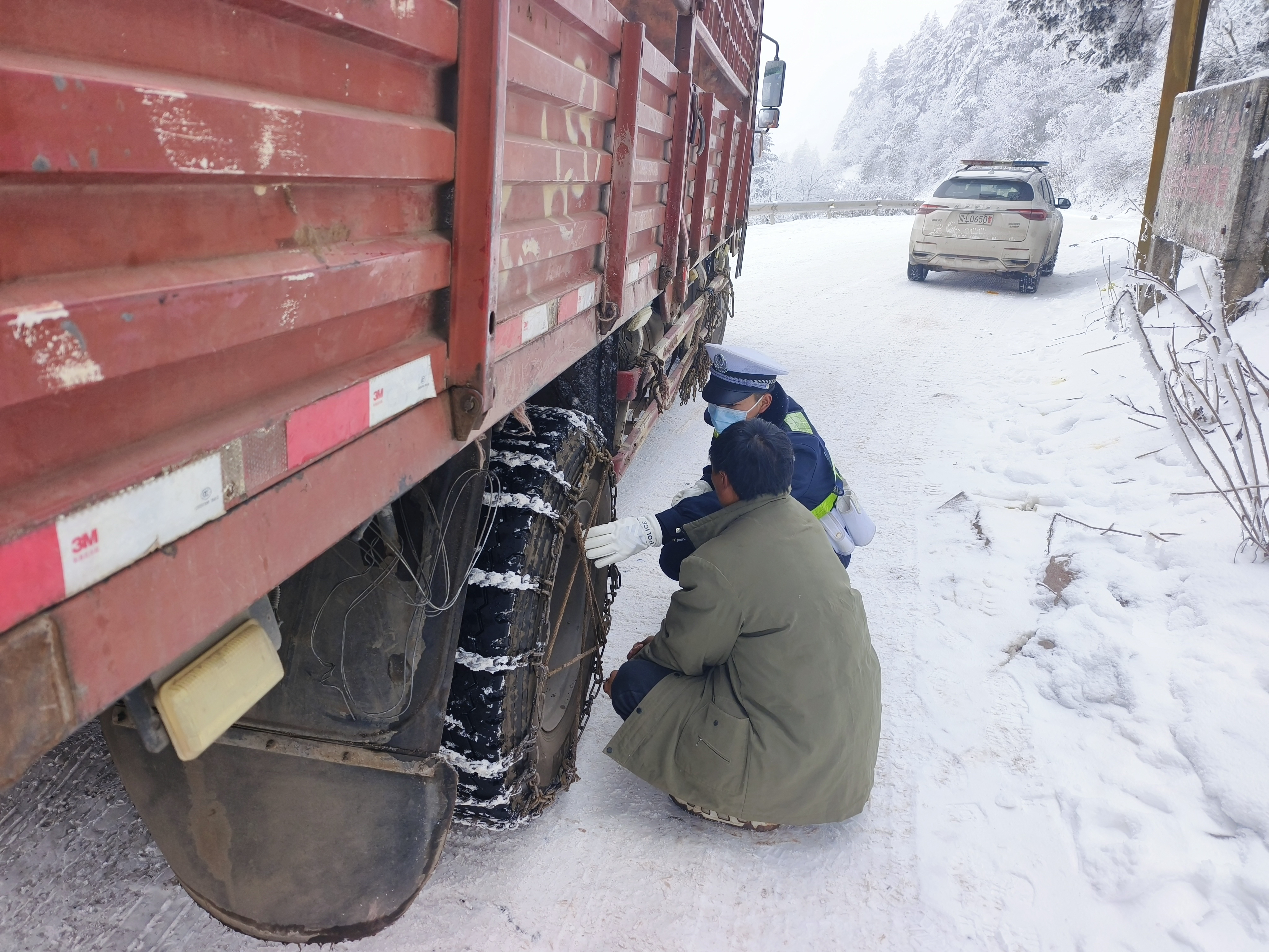 针对春节大车流、大冰雪等叠加风险,四川公安交警协调民间救援力量等,在重点路段按区域、按类型提前布控救援设备和保障物资,在易拥堵、灾害易发、事故多发等地段派驻人员24小时值守,综合采取警车带路、编组放行等方法缓解路面拥堵,确保遇灾及时出动、遇警快速响应、遇堵迅速疏导。