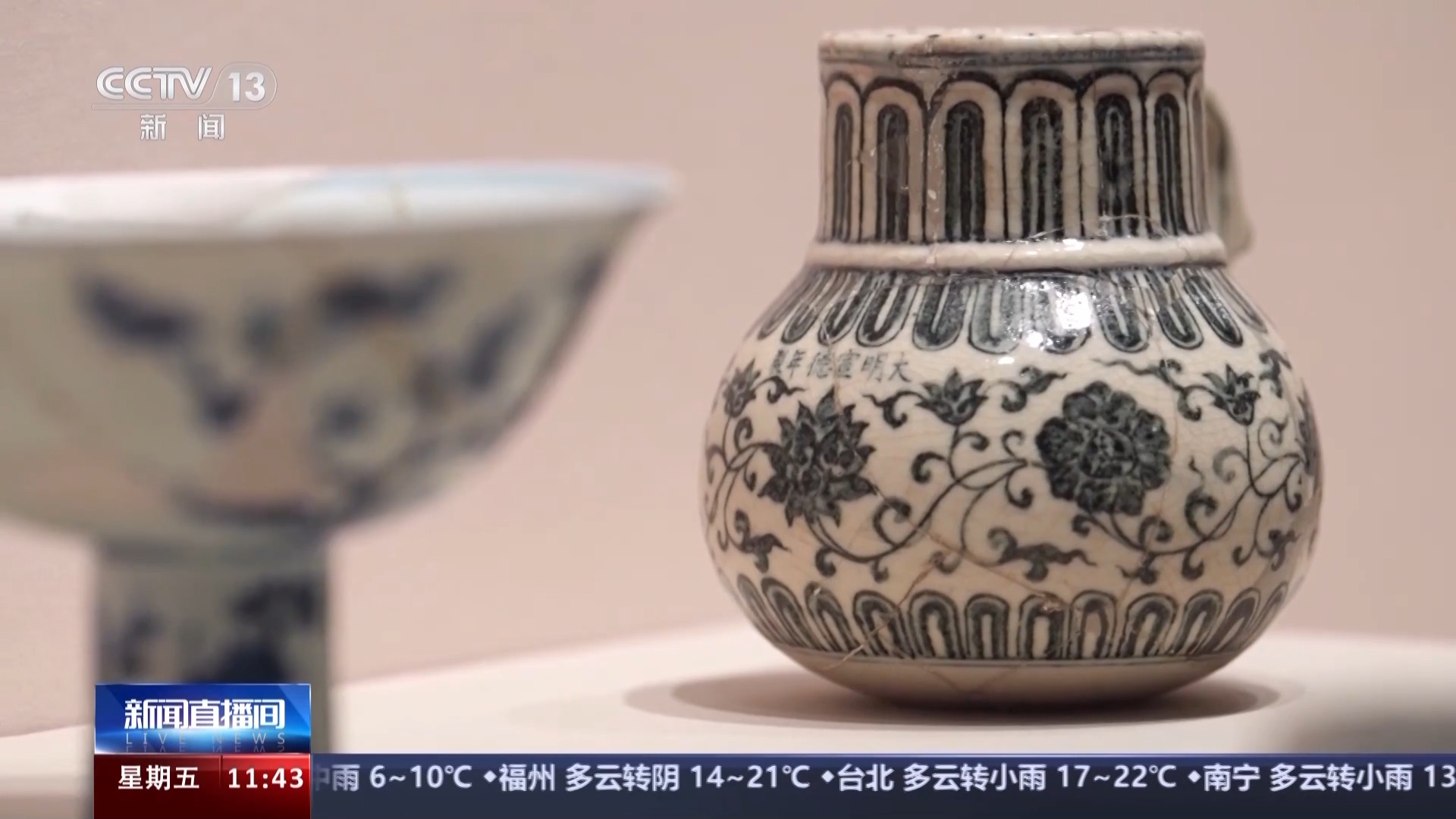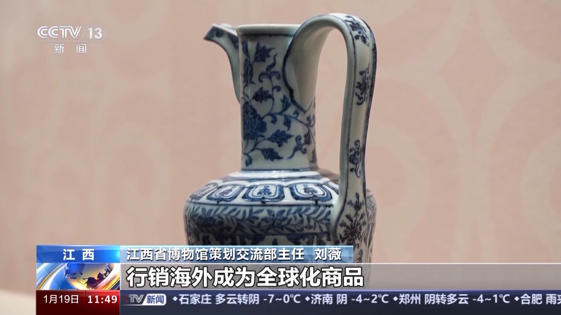 江西省博物馆策划交流部主任 刘薇:像我们这一组瓷器都是具有中西亚风格的这样的一组器物。从郑和七下西洋将御窑瓷器作为国礼,到江西景德镇瓷器行销海外成为全球化商品,我们的中国瓷器已经不仅仅是作为一件件日用品和艺术品,而是成为文明之间对话的桥梁,传递的是中华民族开放包容、和平友好、美美与共的精神和气度。