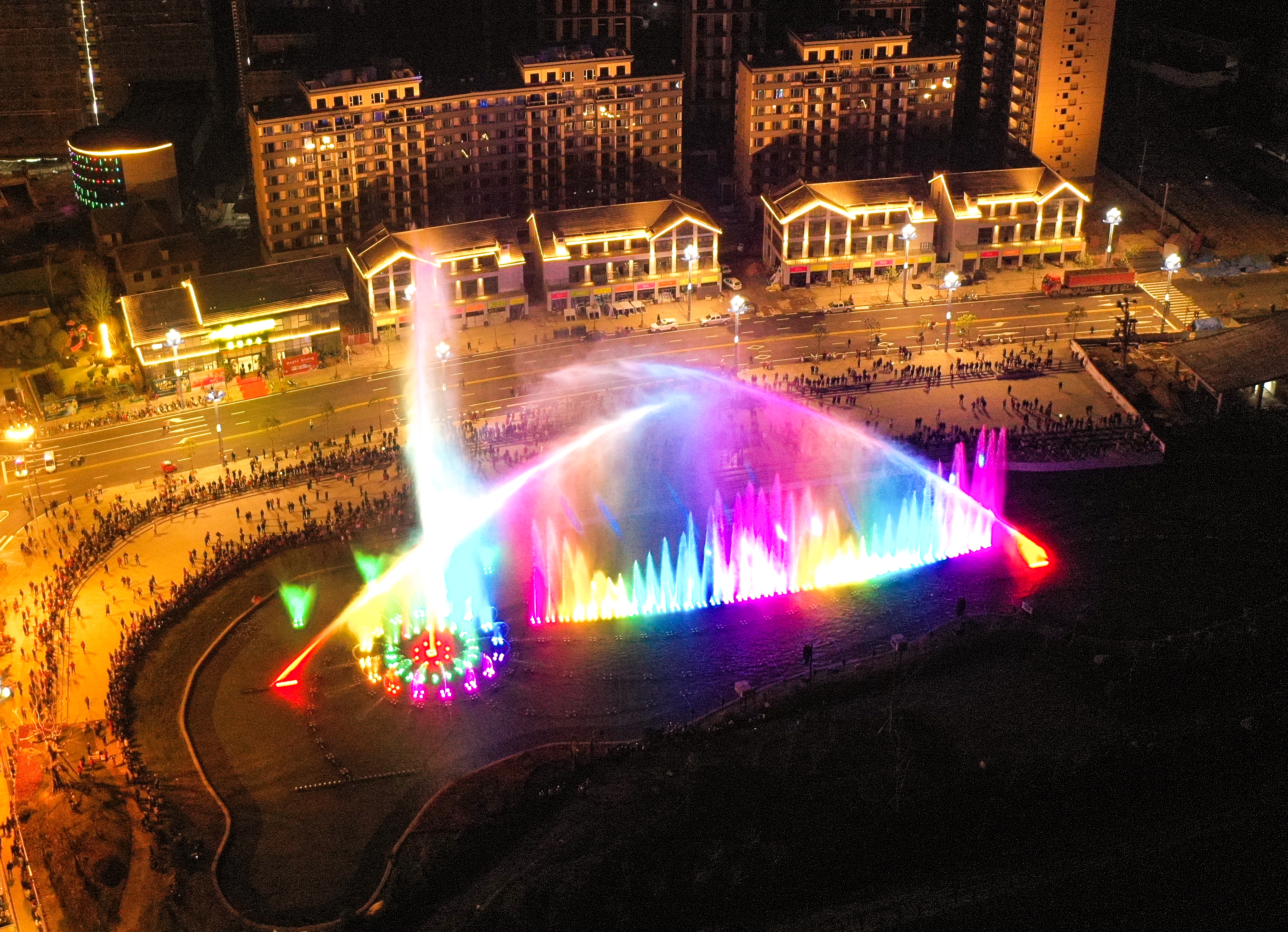 凤凰阁前的音乐律动喷泉吸引众多游客