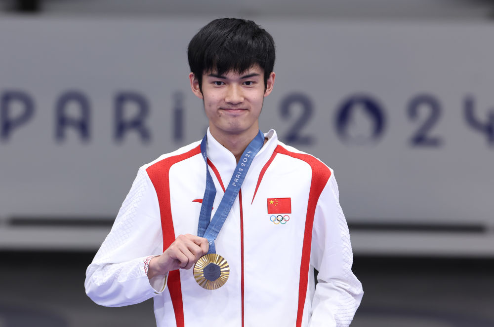 7月29日,冠军中国选手盛李豪在颁奖仪式上。新华社记者 张帆 摄