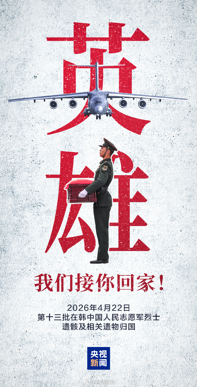 今天,12位在韩中国人民志愿军烈士遗骸及遗物归国。70多年的漫长等待,祖国和人民从来没有忘记你们。去时少年身,归来英雄魂。虽未谋面,深受其恩。山河无恙,忠烈回家!