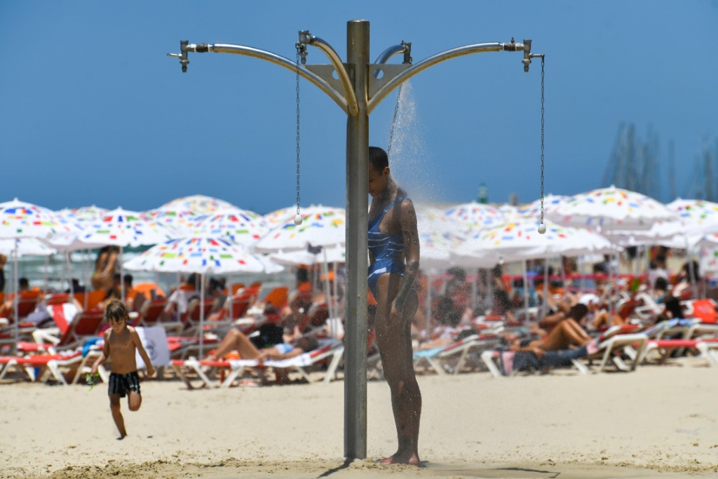 7月12日,人们在以色列特拉维夫海边休闲。近日,以色列遭遇高温天气,人们纷纷来到水边享受清凉。新华社/基尼图片社