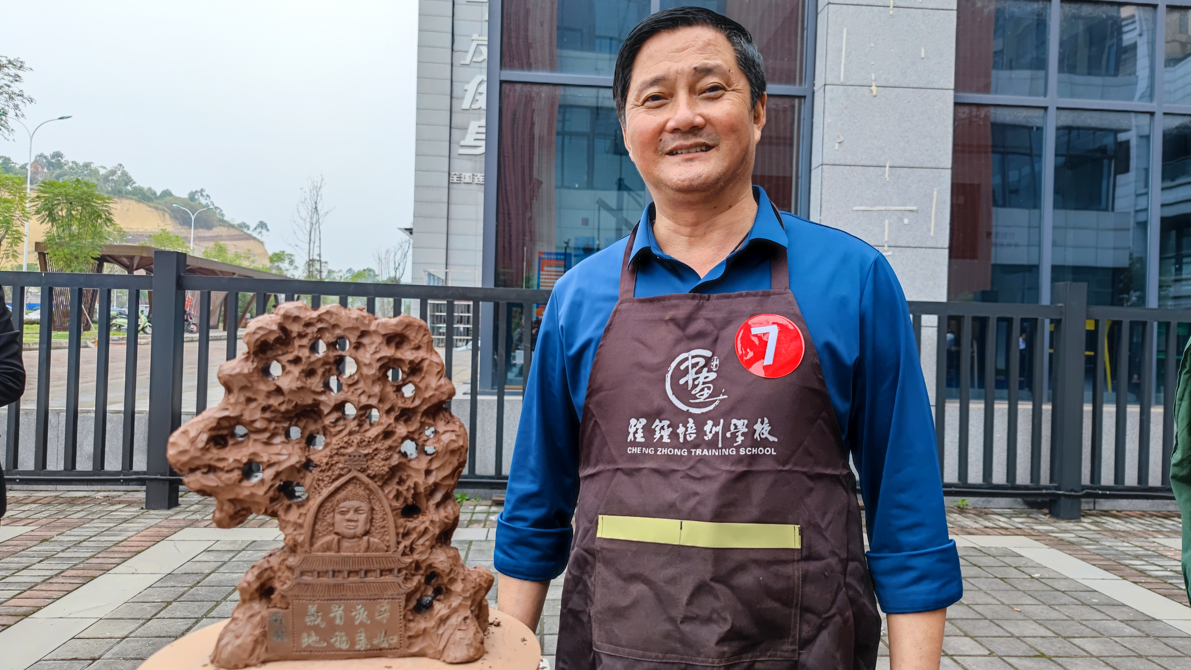 “我是荣县的女婿,这次专门从宜兴赶回来参加这个比赛,作品是以荣县大佛为主题加入梅花元素的太湖石摆件。”参赛选手郑御忠已在江苏宜兴从事了20多年的泥塑,对于这个参赛作品在比赛前便谋划思考了很久。