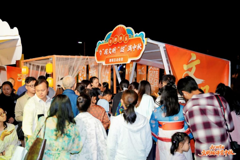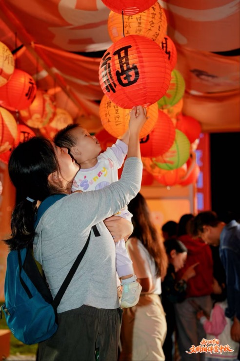 国庆假期,四川天府新区秦皇湖畔华灯初上,“我们的节日·文明相伴赏中秋”主题文明实践活动在月光下启幕。市民们或与湖面月亮装置打卡互动或在非遗箫声中笑猜灯谜,度过了一个别开生面的“水上中秋”。