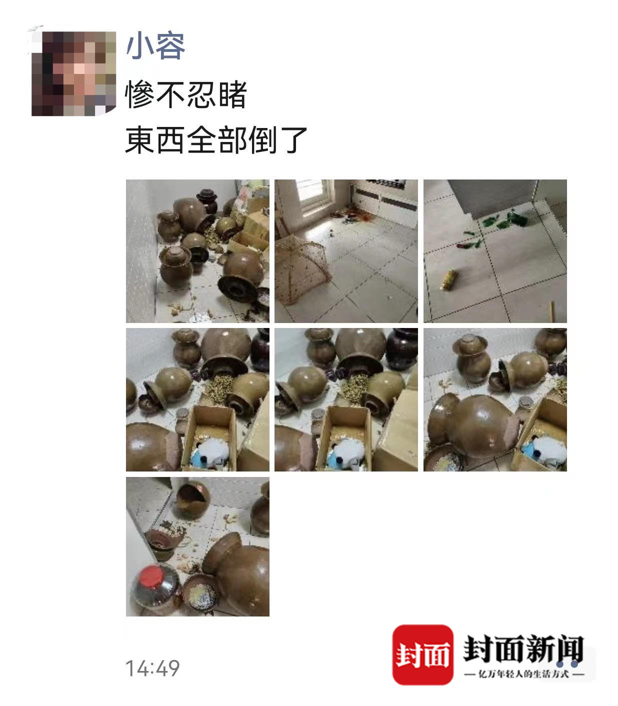 雷燕的朋友小容住在玉里镇,家里的陶瓷坛子摔破了一地
