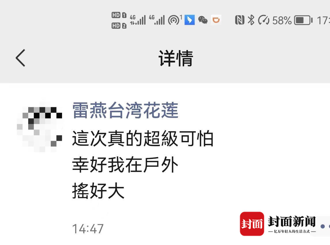 后来,在网络上,她看见上午经过的玉里镇高寮大桥垮了,玉里镇朋友家里的土地也裂缝了,陶瓷坛子摔破了一地。这些,都让雷燕有种劫后余生的感觉。“如果我们不提前走,真不知道今天会是怎样的情况。”