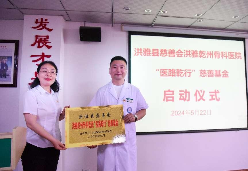 2024年,洪雅县慈善会与洪雅乾州骨科医院联合启动了“医路乾行”慈善基金。该基金由洪雅乾州骨科医院全体员工共同捐赠10万元设立,专项救助洪雅县家庭困难的尿毒症透析患者和骨伤病人等,救助标准根据患者年自费金额分为三个档次,每年最高救助两千元。