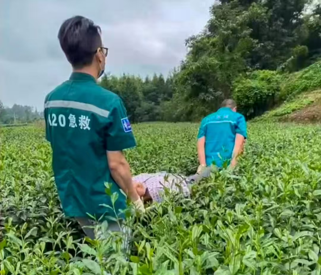 几年前,洪雅县止戈镇八角庙村一村民砍树时意外被树压倒在地,背部受伤,情况危急。由于救护车开不进山,胡勇和救护人员与时间赛跑,在崎岖的山路里、茶地里行进了3公里,将伤病员抬下山成功救治。回到医院后,他才发现全身已经被汗水打湿。