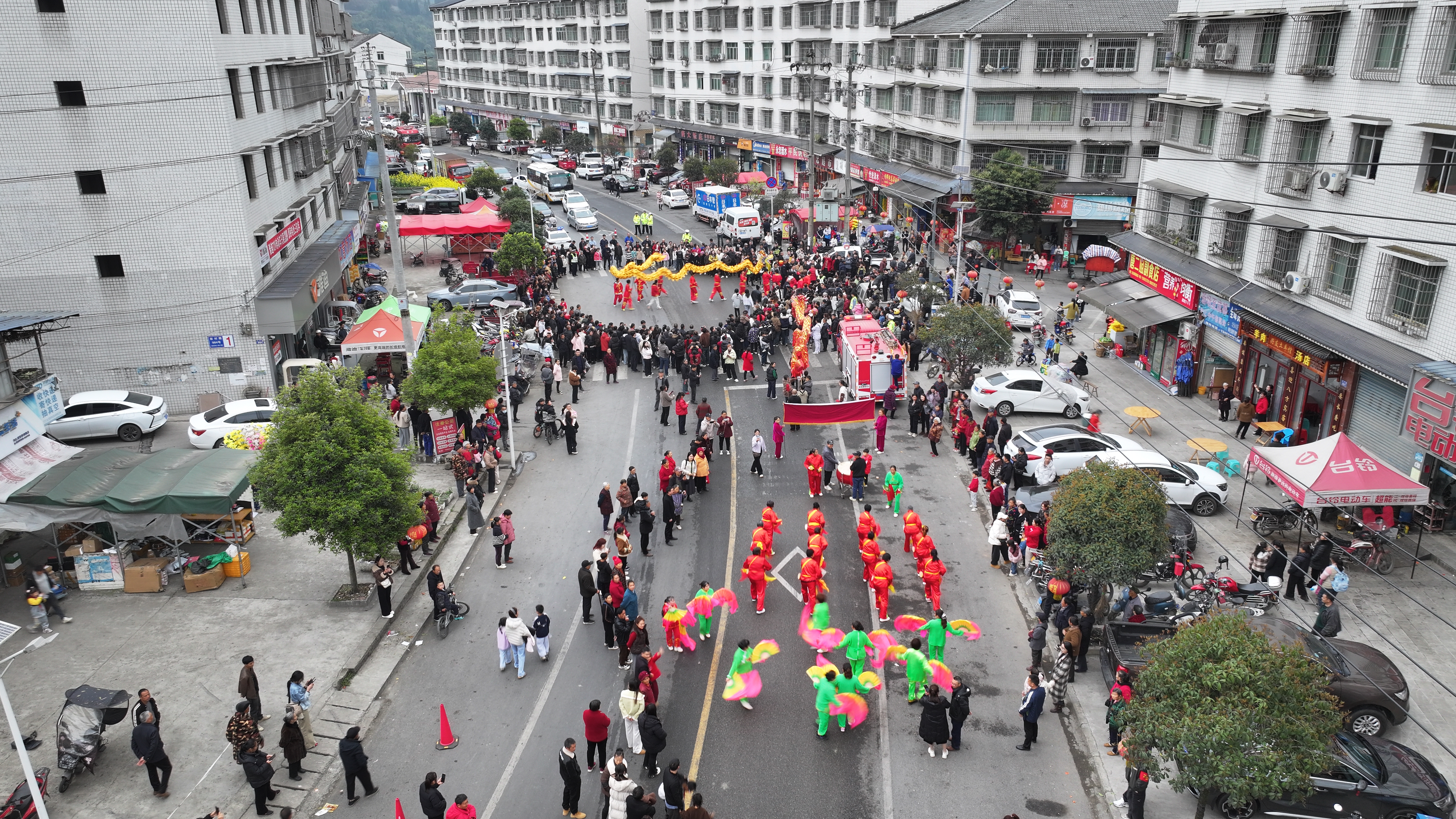 当日下午两点,翔龙广场锣鼓喧天,出龙仪式正式启动。一条由大龙、彩龙等龙灯队伍,以及花轿、腰鼓、秧歌队组成的巡游长龙蜿蜒而出,沿翔龙广场、老街、十八米大街等主要街道一路展演。龙身翻腾,鼓声铿锵,街道两侧人潮涌动,观众纷纷举起手机,定格下这热闹瞬间。
