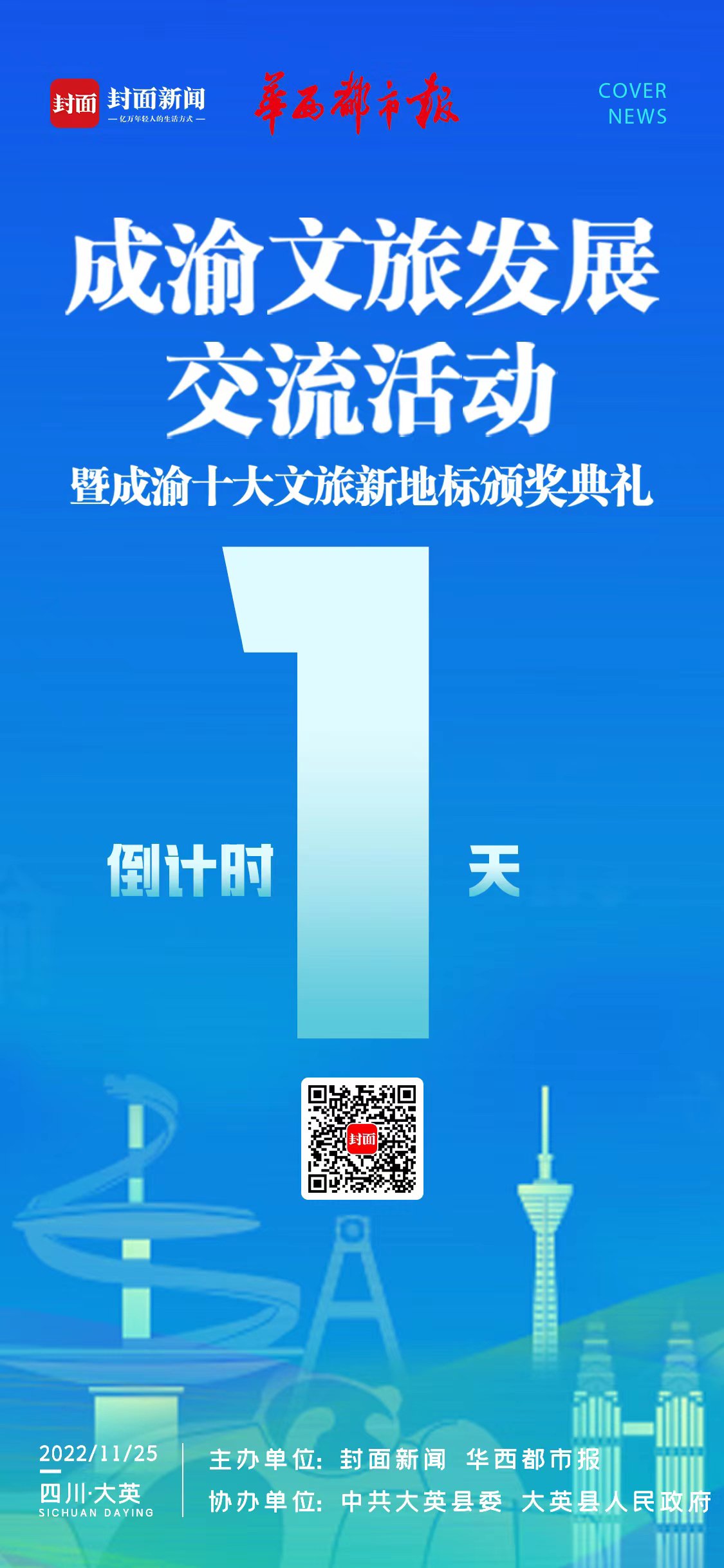 11月25日,成渝文旅发展交流活动暨“成渝十大文旅新地标”颁奖典礼,将在四川省遂宁市大英县举行。届时,国内多位知名文旅专家学者、川渝各级党委政府领导、文旅产业代表、景区负责人等将齐聚“大美大英”,围绕川渝地区文旅发展话题,建言献策、深入交流。