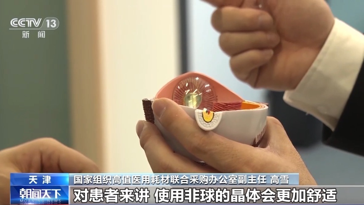 国家组织高值医用耗材联合采购办公室副主任 高雪:球面的人工晶体,从视觉边缘来看,它有一个变化。那么非球面的人工晶体,没有任何折射的变化。对患者来讲,使用非球的晶体会更加舒适,不会产生周边的变化。我们这次的集中带量采购,没有招采球面的人工晶体。通过非球的晶体中标之后,我们对球面晶体进行价格的限制,那么也是保证市场上不会短缺这个产品。