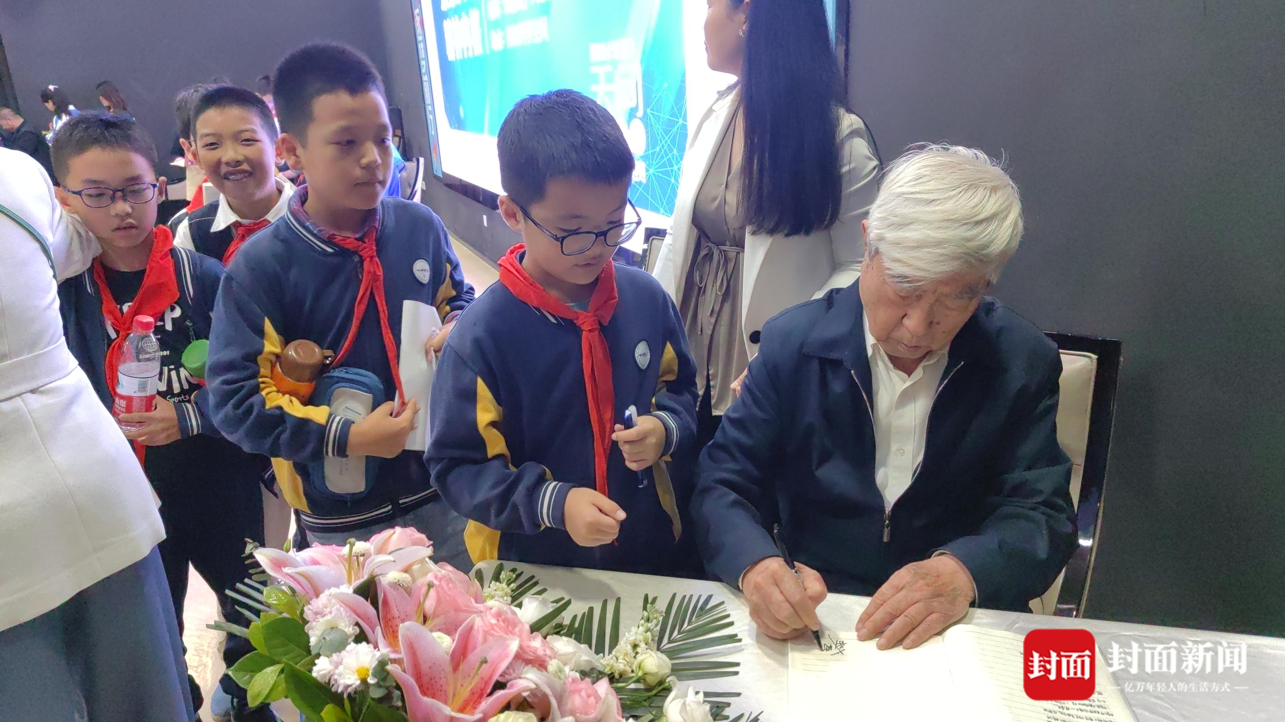 戚发轫院士给孩子们签名 摄影 吴德玉