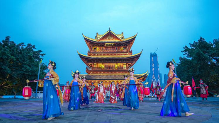翠屏区僰道历史文化街区作为央视秋晚节目取景地之一,为游客重现僰道央视秋晚同款打卡地的同时,还在三江美景处带来变脸、杂技、巡游等一系列国潮演艺。游客与市民可以在水东门下沉广场共赏苏黄奇谈、央视秋晚,去夹镜楼体验穿越悬疑剧《风起长江》,到僰道市集领略热闹节日氛围。