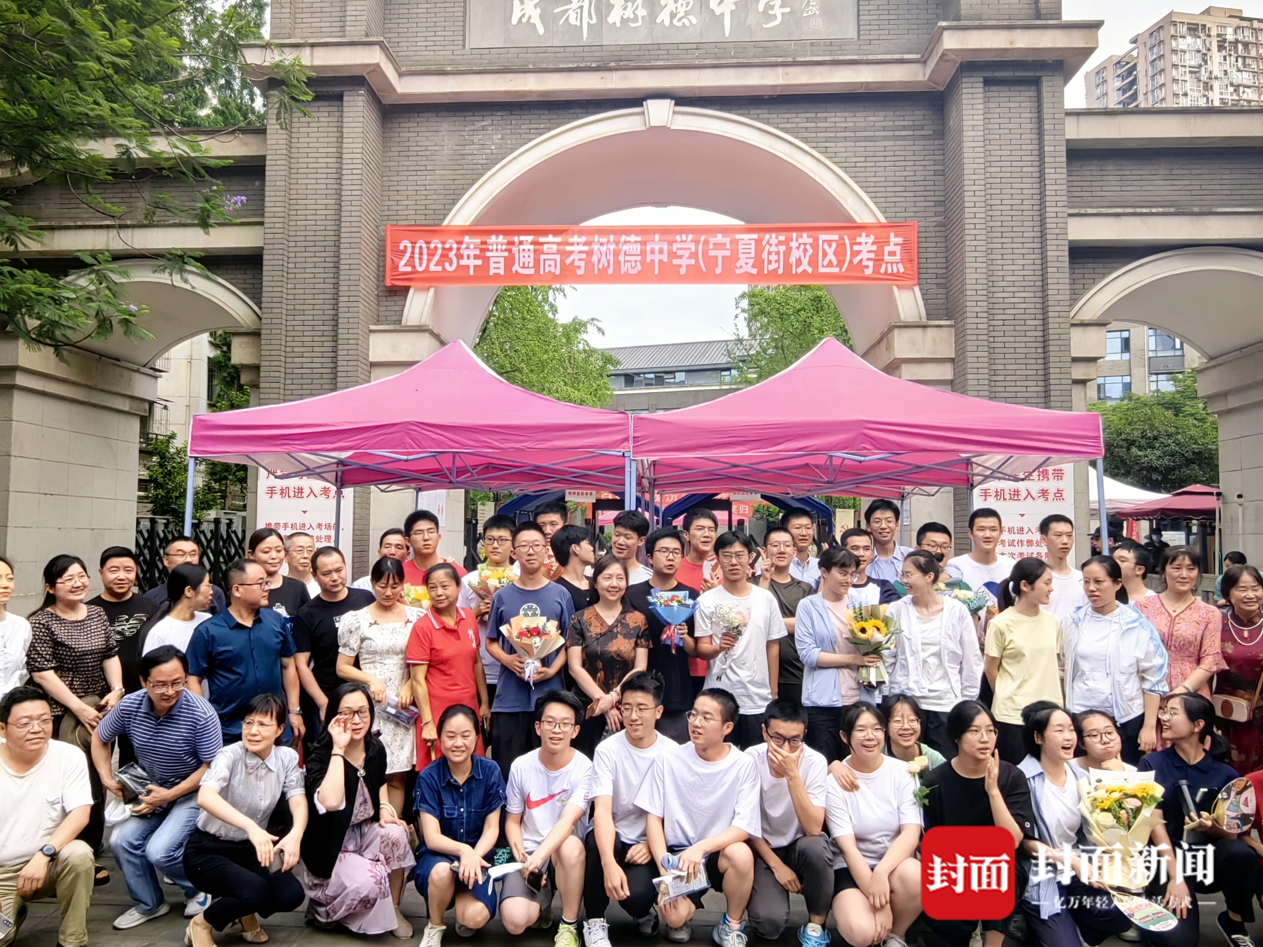 树德中学考点门口,学生被家长老师包围,一身红裙的张蕴心接过妈妈送的向日葵,考后她的第一个愿望是骑行天府绿道,体验成都“公园城市”的魅力,同样接过向日葵的还有小陈,她害羞地说“最大的愿望是减肥吧,高中三年坐太久了,希望好好锻炼一下身体。”