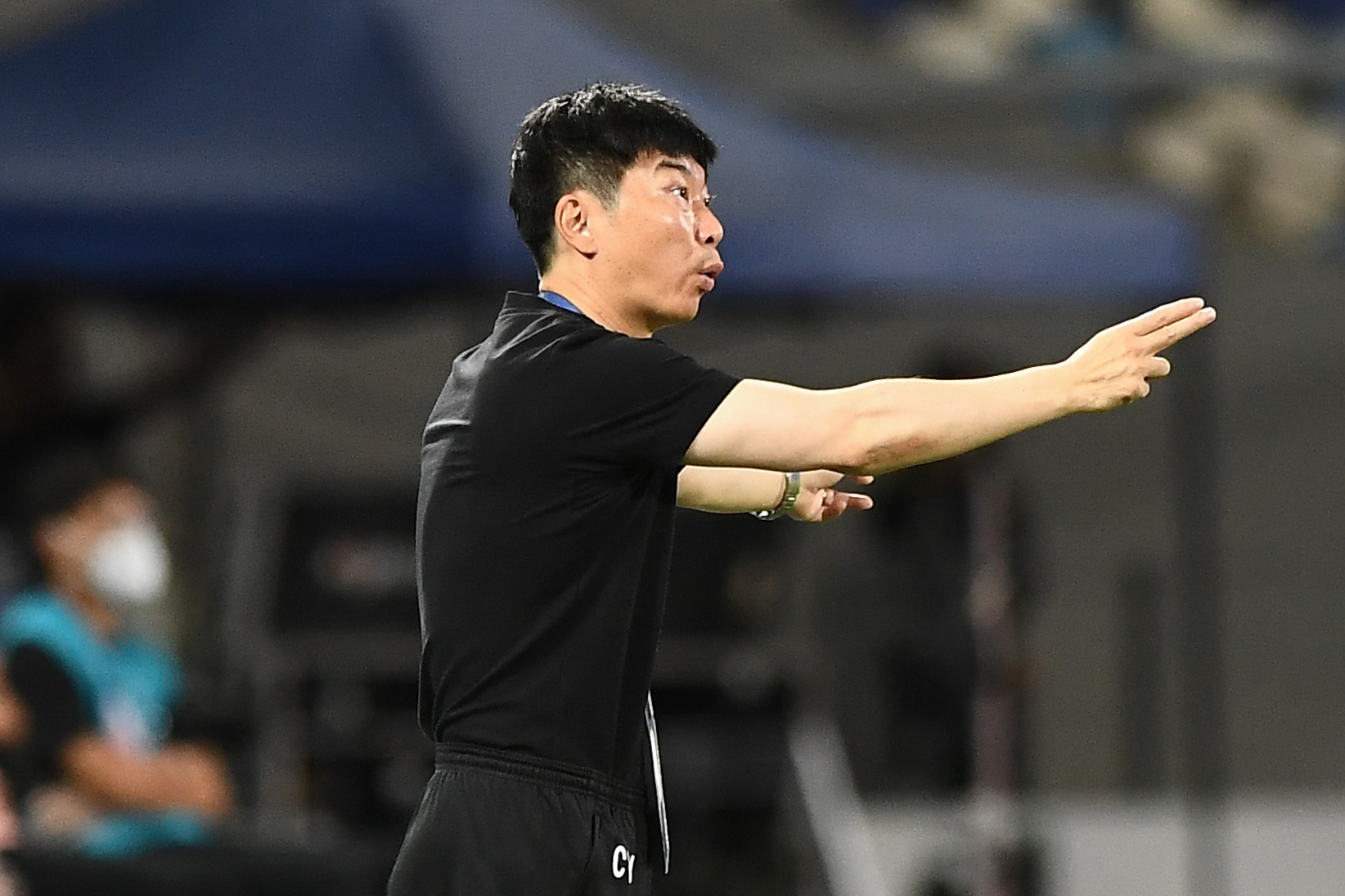 资料图:2022年7月11日,长春亚泰队主教练陈洋在比赛中指挥。新华社记者 胡智轩 摄