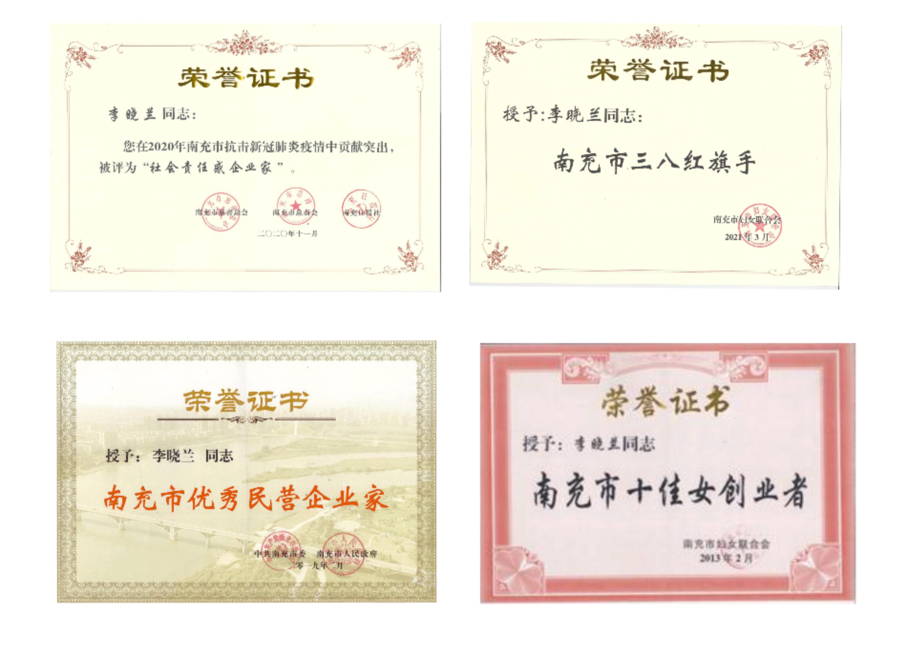 企业安置4000多名下岗女员工实现再就业,李晓兰用灼热的情怀为企业发展注活力、添动力,体现了企业家的魄力与担当;以独特的人格魅力影响着身边人、身边事,书写满满的人生正能量。先后荣获省级城镇妇女“巾帼建功”活动巾帼创业标兵、市级十佳女创业者、市级优秀民营企业家等多项荣誉称号,获得中、省、市和区各级政府的表彰。