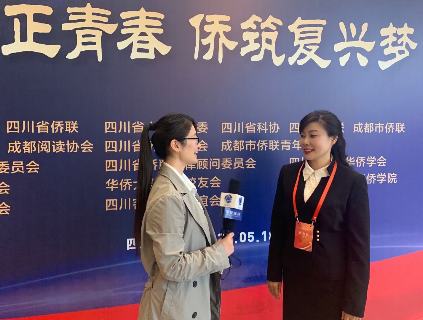 ▲ 2021年,李晓兰参加侨界川渝菁英汇时接受采访