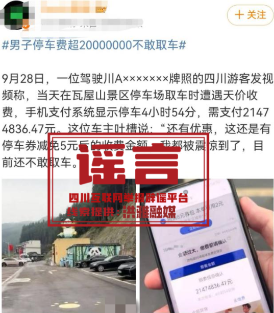 现相关部门已督促该停车场完善收费系统,立即增派工作人员加强停车服务引导,及时解决游客反映问题。在此提醒广大网民在网上发布信息、言论,应遵守法律法规,不造谣、不信谣、不传谣,共建清朗网络空间。(来源:四川互联网举报辟谣平台、洪雅融媒)