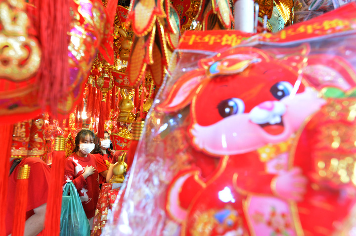1月16日,顾客在泰国曼谷唐人街选购春节饰品。新华社发(拉亨摄)
