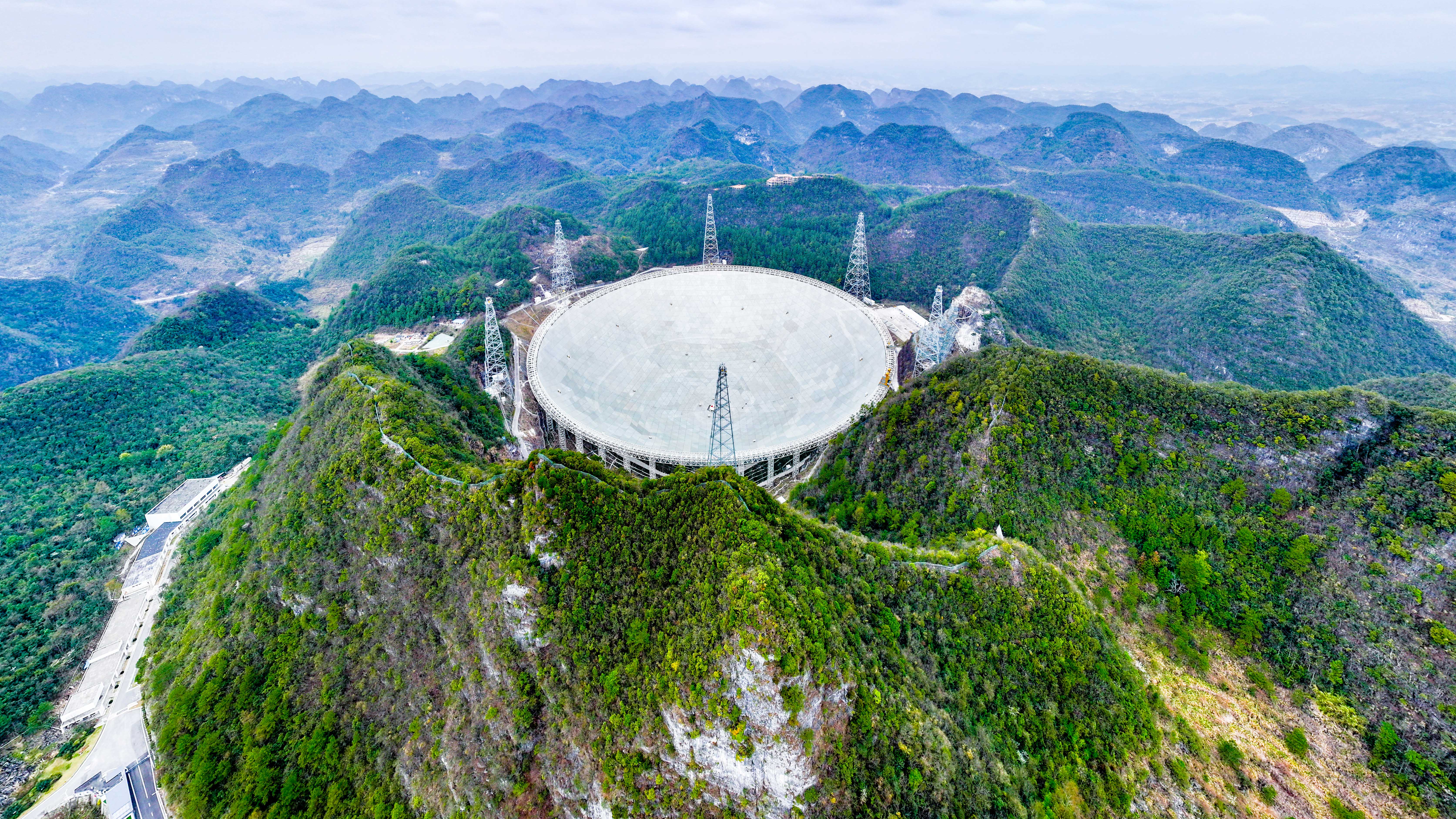 坐落于中国西南贵州省平塘县的“中国天眼”,是目前世界上最大、最灵敏的单口径球面射电望远镜,反射面板总面积达25万平方米,相当于30个标准足球场。