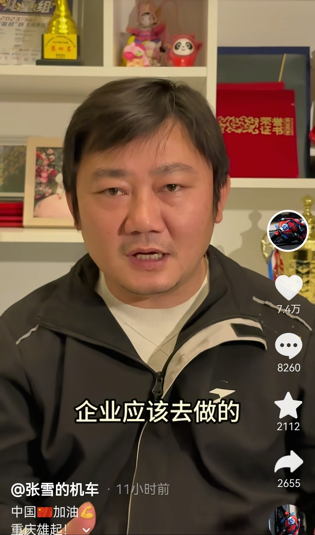 4月4日深夜,张雪通过其抖音账号“张雪的机车”发布视频,配文“中国加油,重庆雄起!”,正式对此前言论作出回应。