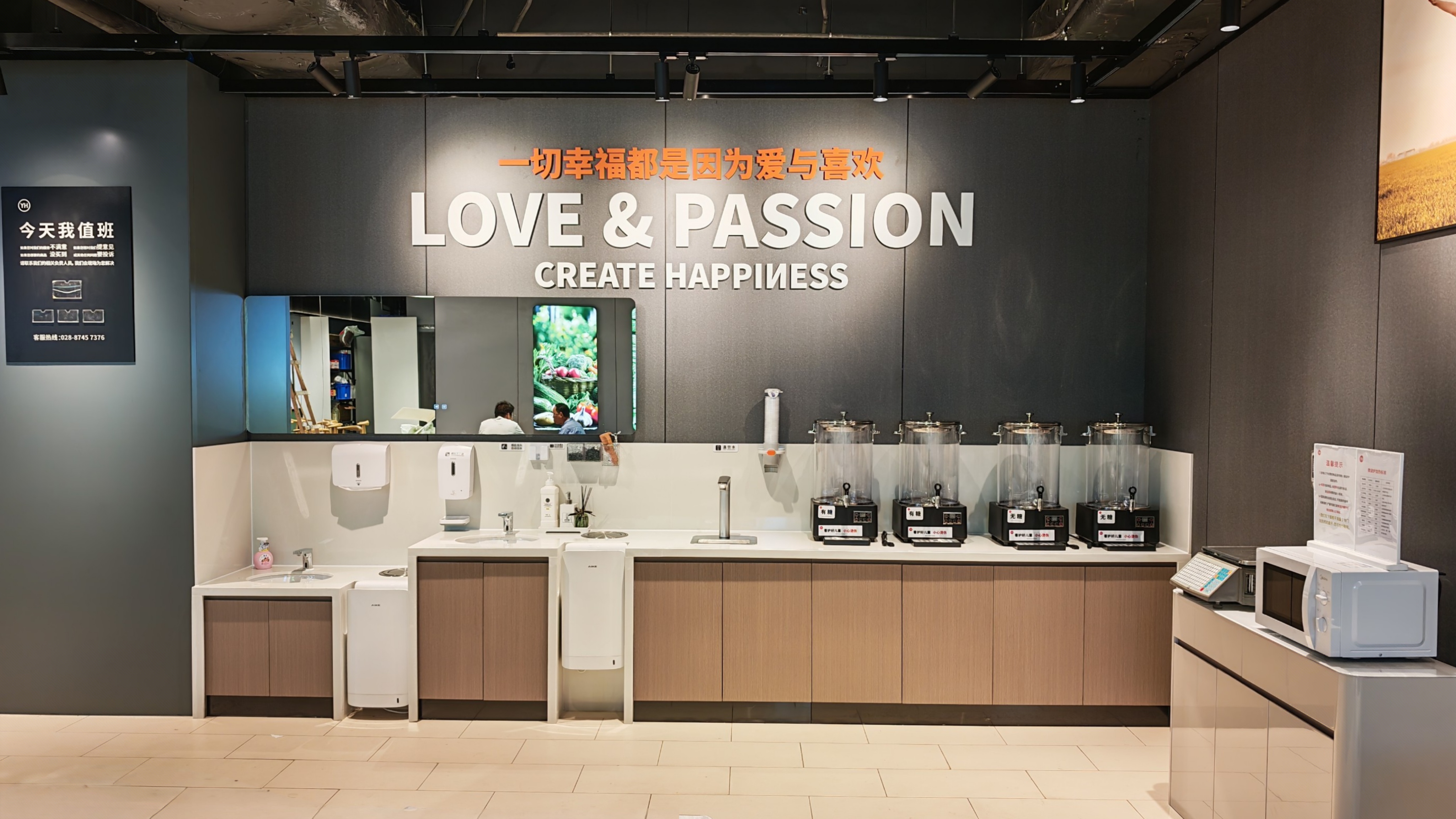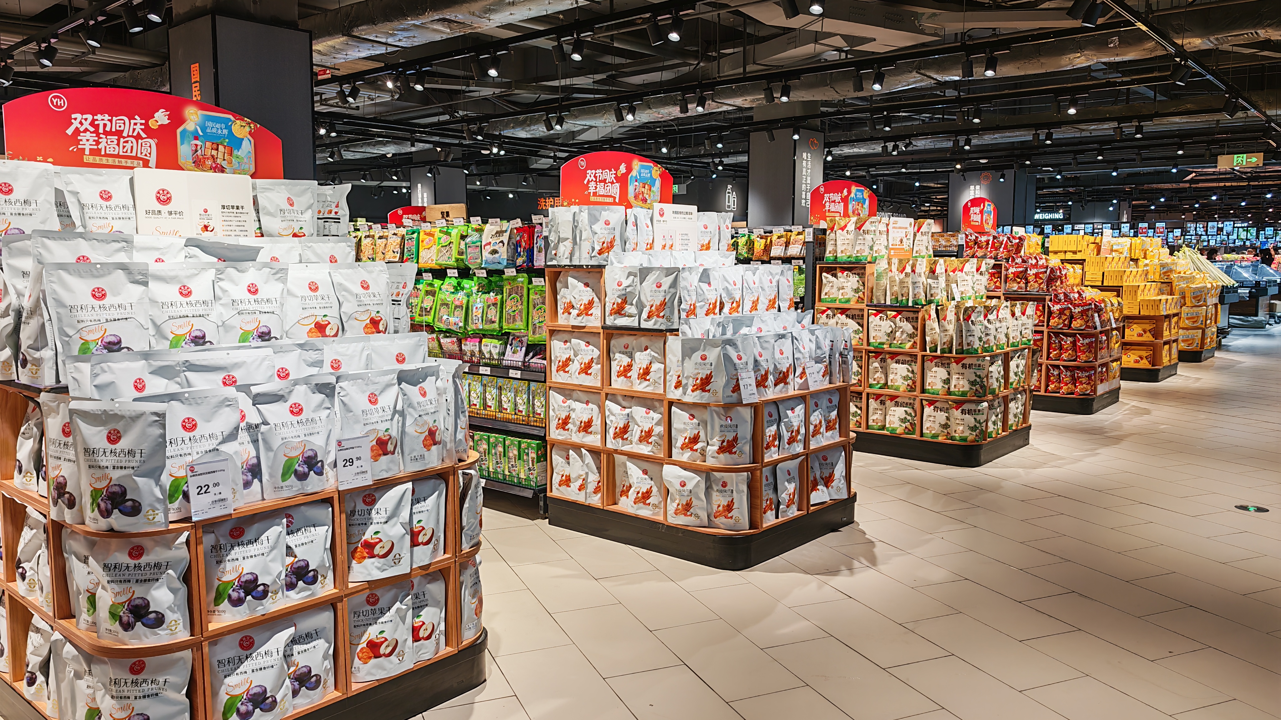 门店同步优化空间体验与服务细节:过道拓宽至3米,货架统一降至1.6米,营造开阔通透的购物环境;设置健康驿站、便民角、宠物安置区等便利设施;在生鲜区提供肉品定制处理与专业水产清洁等个性化服务。调味品区配备老花镜,体现出极致化服务理念。