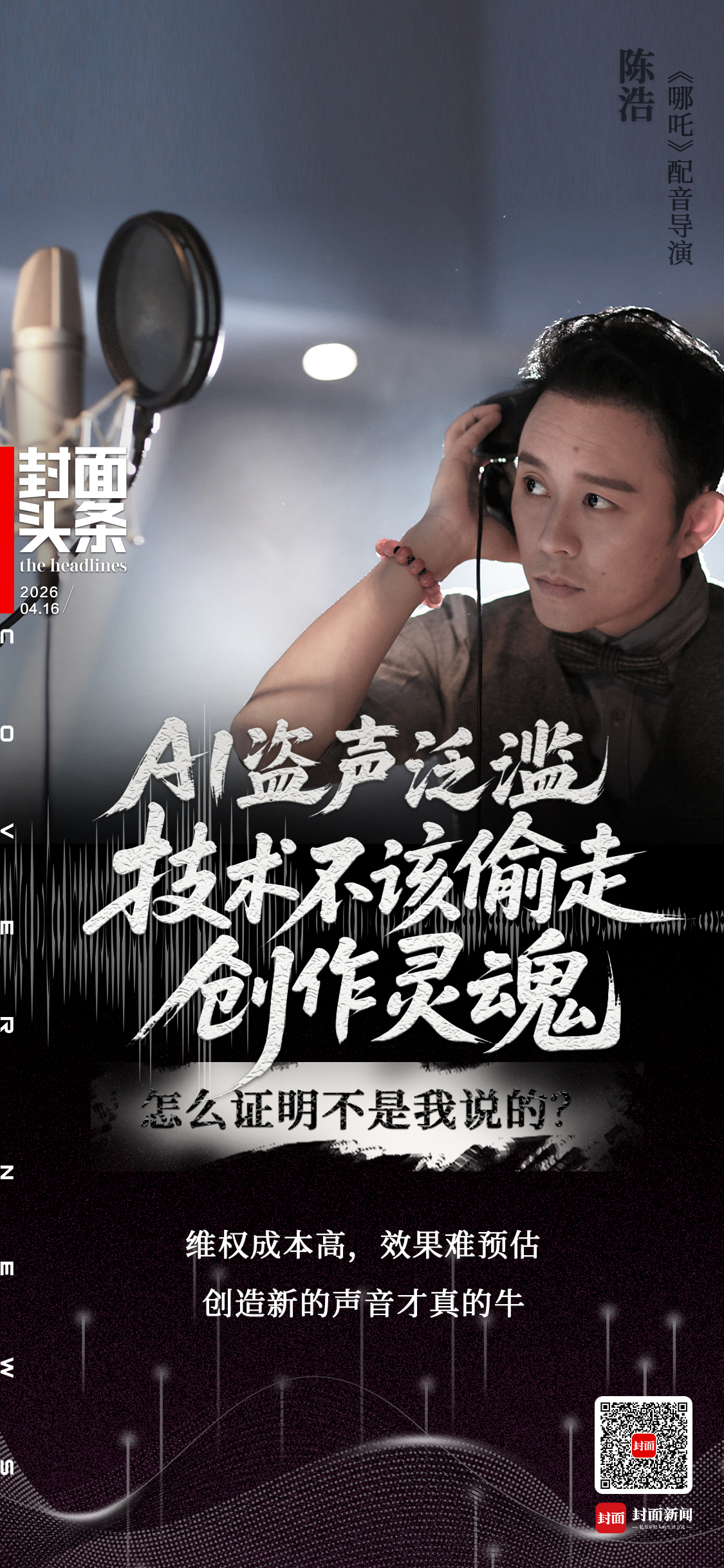 4月13日晚,面对AI配音侵权的行业乱象,电影《哪吒》系列配音导演、著名配音演员陈浩在结束一整天的工作后,接受了封面新闻记者的独家专访。