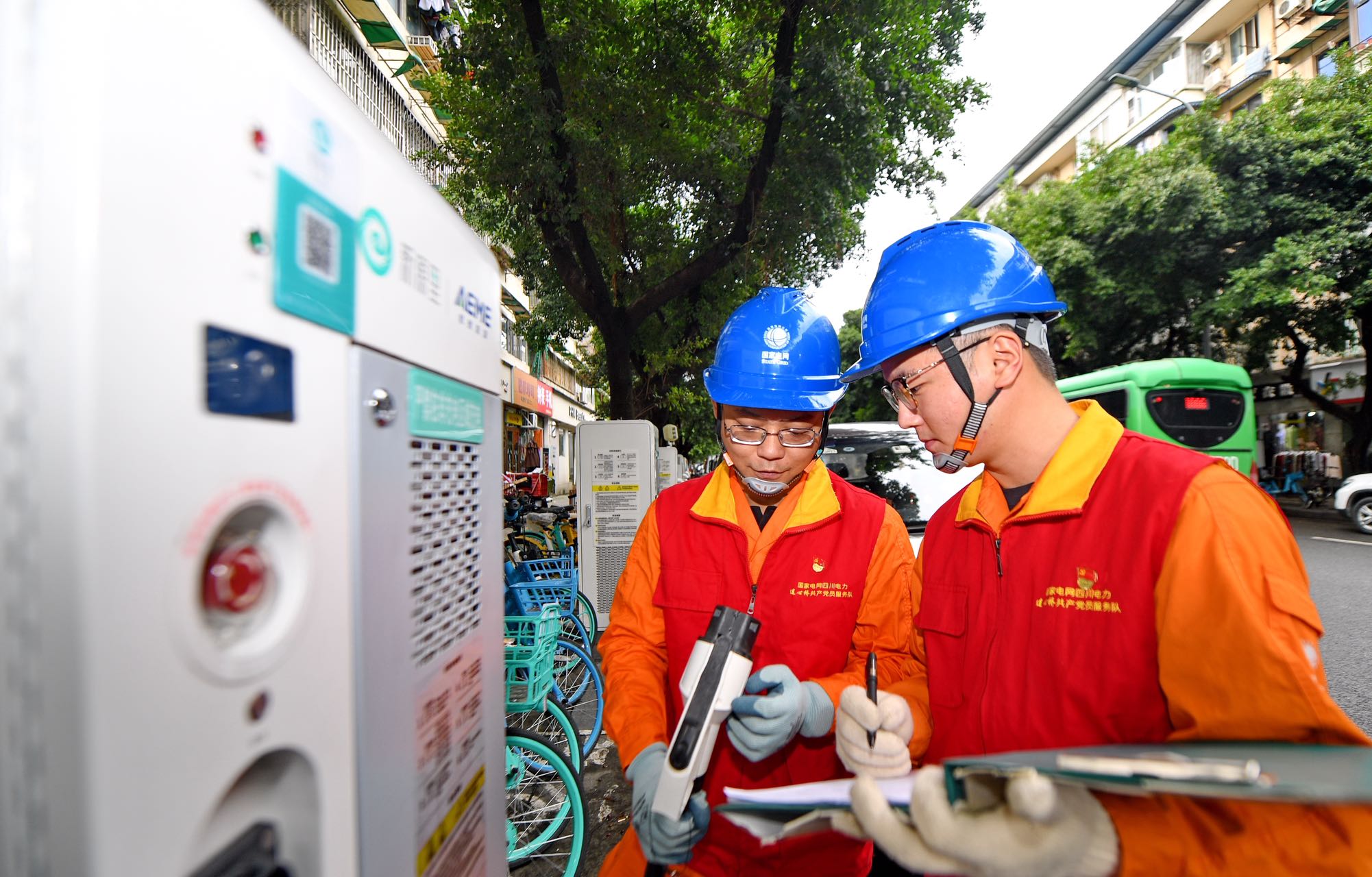 烟火气与现代文化有机融合的玉林片区,是网红打卡地。假期到来前,国网四川电力(成都高新)连心桥党员服务队队员杨冰灏、吴谨轶对社区内的“交能融合”(交通、能源融合)V2G路侧充电站开展特巡特护,保障游客驾驶新能源汽车到玉林社区打卡。据悉,该充电站是全国首批车网互动试点项目,能够实现电网、车辆、储能装置三者之间电能流动,为城市核心区充电设施建设提供解决方案。