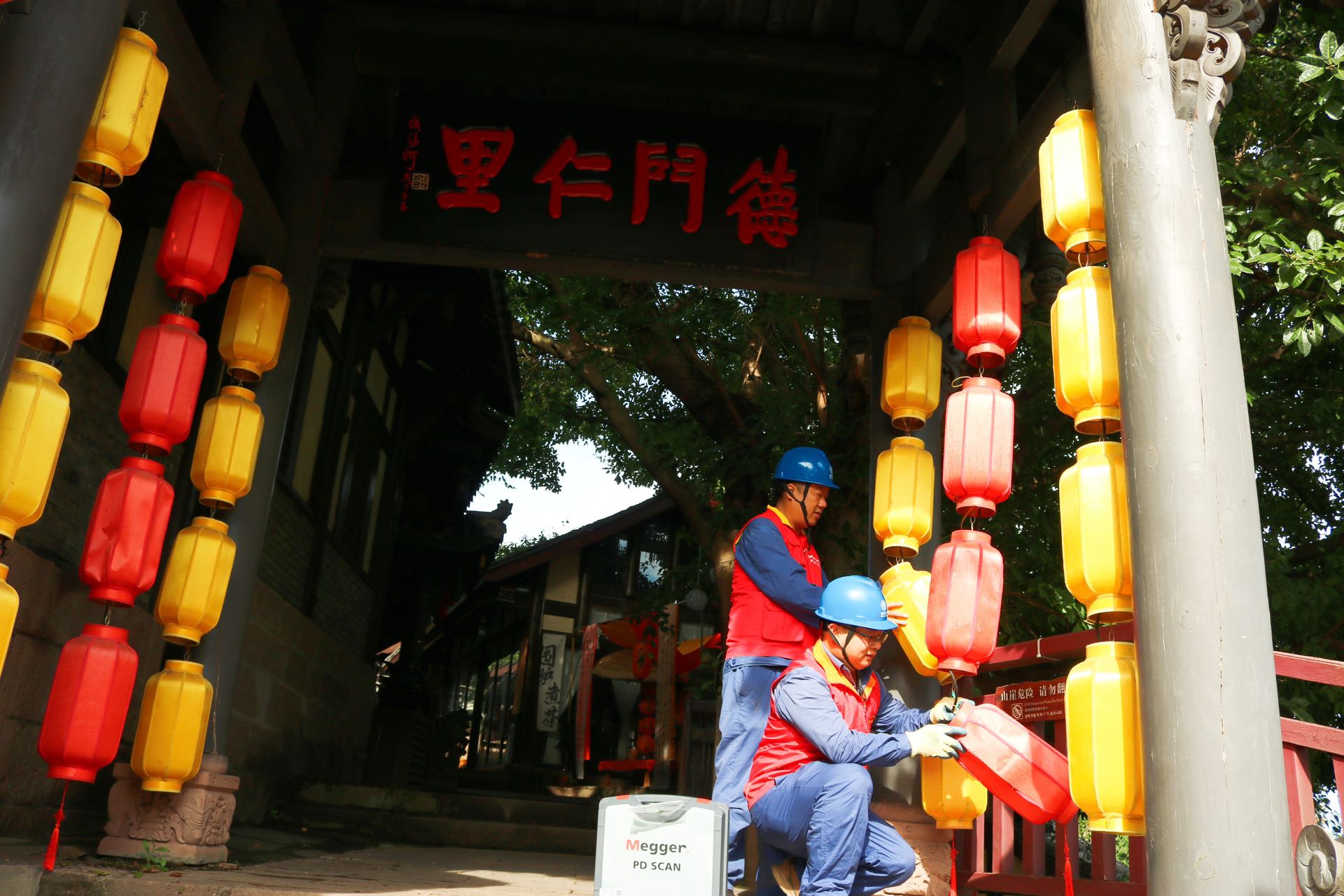 10月2日,在沱江边的金堂县五凤溪古镇,国网金堂县供电公司工作人员到古镇的酒店、民宿、农家乐,细致排查用电隐患。节前,提前对接古镇管理部门,对古镇内输、配、变设备展开了全面巡视、维护与消缺,并协助商户更换了8处节日彩灯、处理了20处接触不良问题。节日期间,还在古镇增设2个值班点,16名保电人员24小时不间断值守,为古镇的节日盛景提供坚实电力支撑。