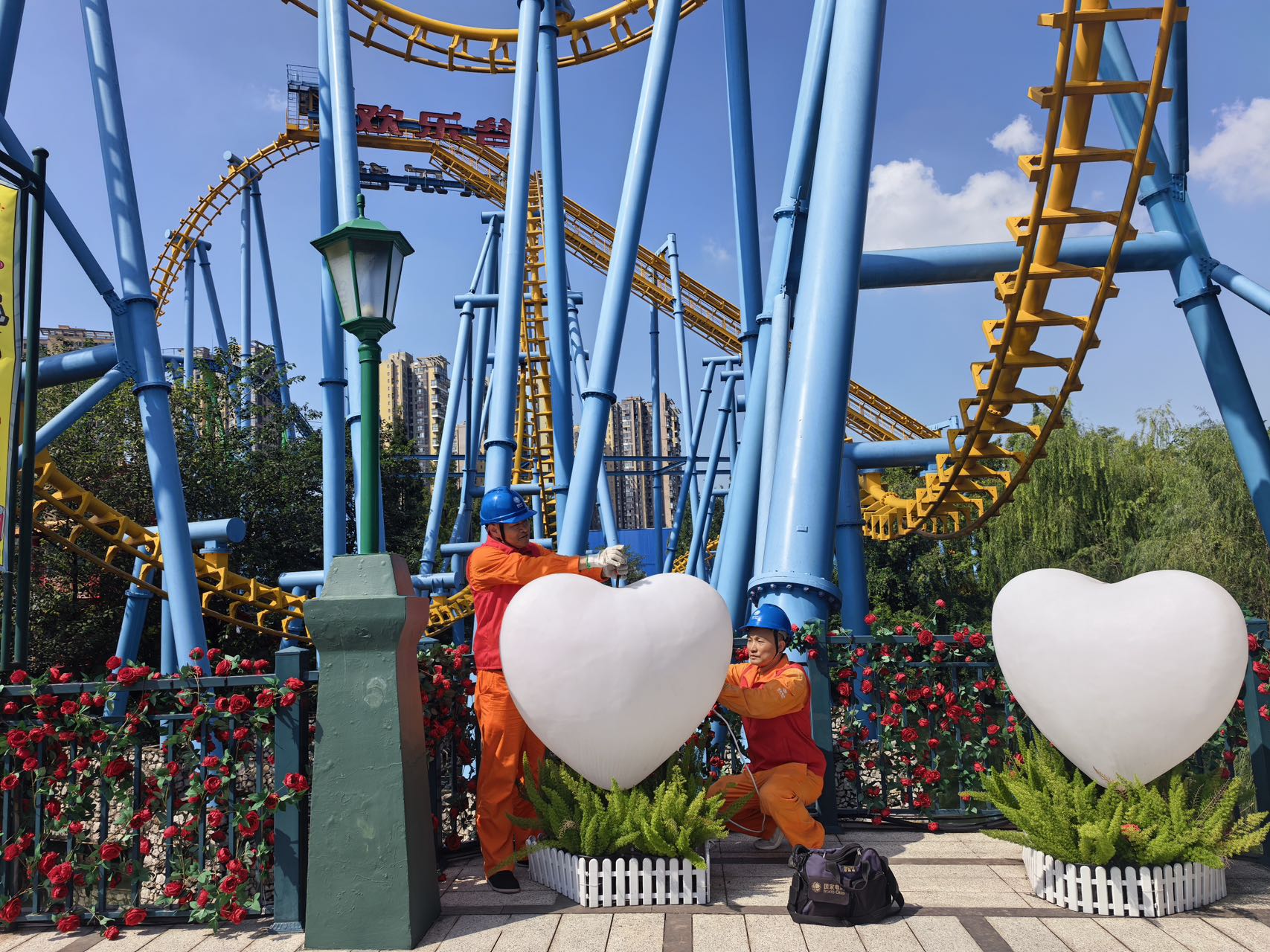 9月24日,国网四川电力(成都金牛)连心桥共产党员服务队在成都欢乐谷针对大型游乐设施、节日装饰等开展用电检查,协助隐患排查。