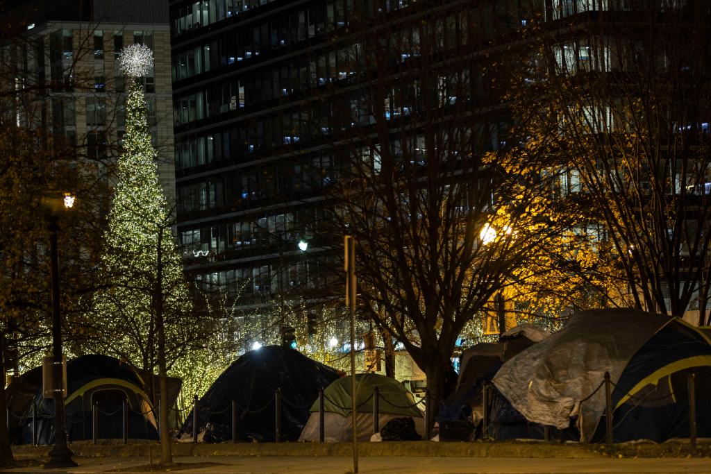 这是2022年11月23日在美国华盛顿拍摄的无家可归者居住的帐篷。新华社记者刘杰摄