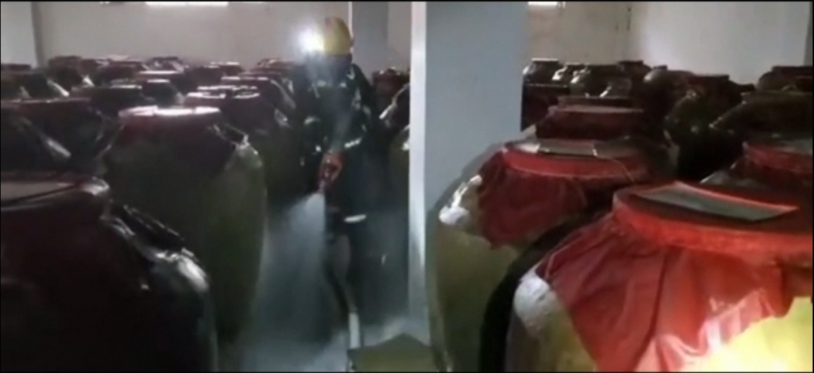 此前,四川省消防救援总队接到该突发情况后,立即调集了9车55名消防指战员赶往现场增援,对泄漏的白酒进行持续稀释,并扩大警戒范围,防止泄漏酒精遇到明火后爆燃。据了解,该仓库有储酒陶瓷罐1818个,约1105吨。无异于一颗巨大的“定时炸弹”,必须妥善排危消除隐患。