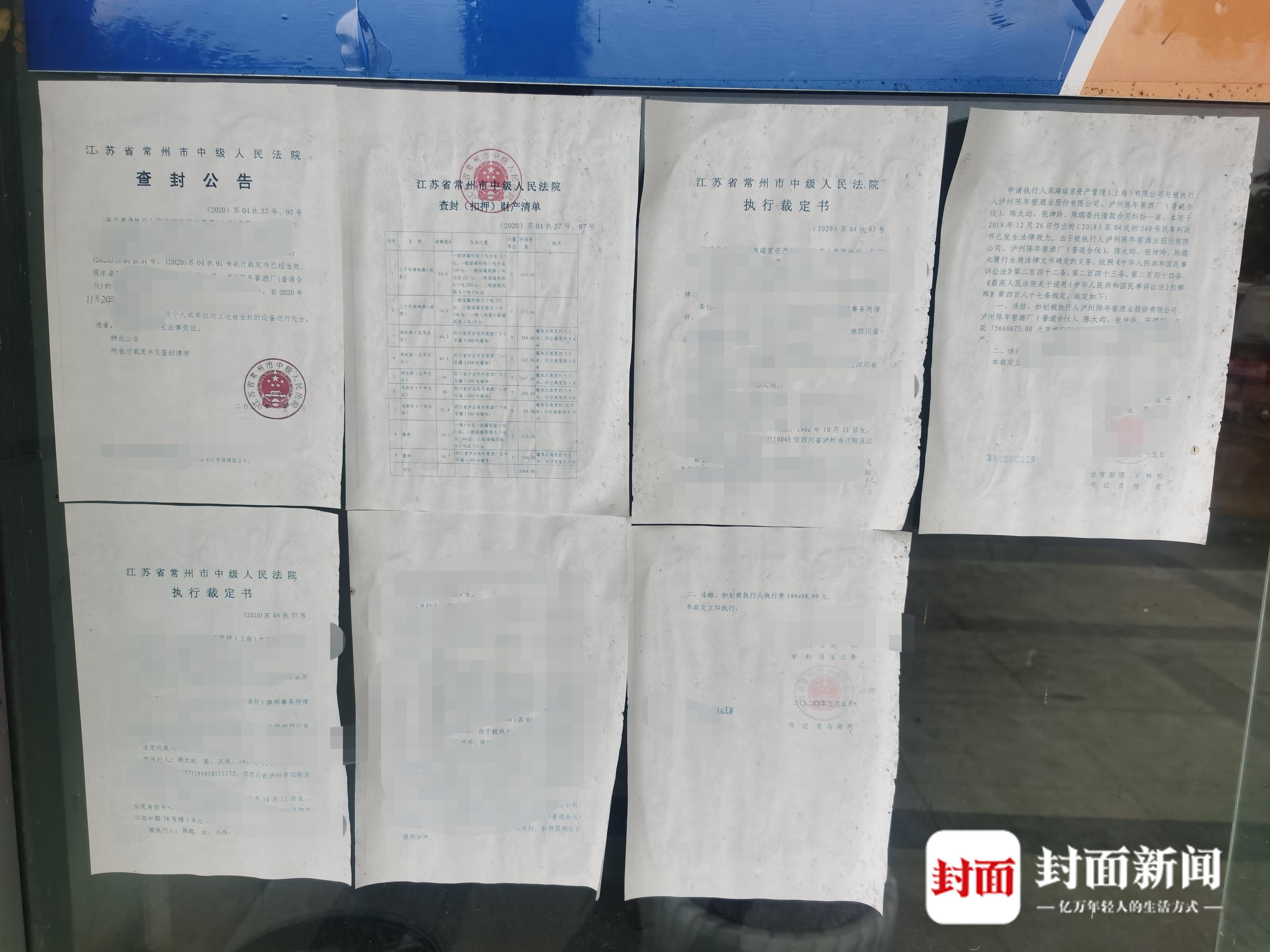 公告显示,泸州陈年窖酒业股份有限公司等为该借款合同纠纷案件的被执行人,该院作出的(2020)苏04执37号、(2020)苏04 执97号执行裁定书已经生效,依法对泸州陈年窖酒业股份有限公司、泸州陈年窖酒厂(普通合伙)的存酒进行查封,查封期限两年,自2020年11月24日起至2022年11月23日止。查封期间,禁止任何个人或单位对上述被查封的设备进行处分,违者,本院将依法追究法律责任。