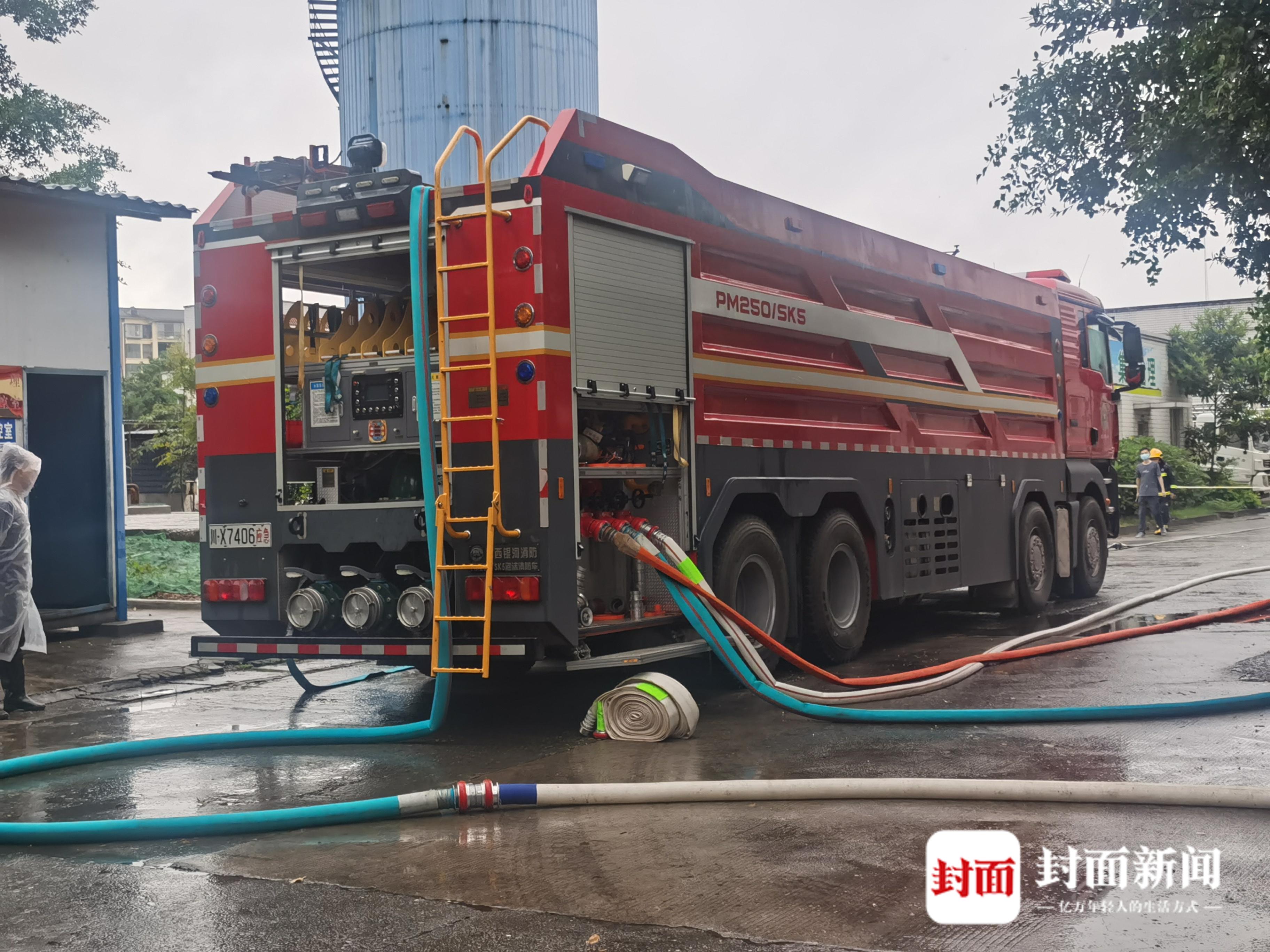 现场救援人员告诉封面新闻记者,由于高浓度白酒是甲类火灾危险品,遇到一丁点儿火星就会发生爆燃,白酒泄漏后,现场酒精浓度非常高,因此紧急对事发现场进行了封锁,正等待水车进入稀释并展开救援。