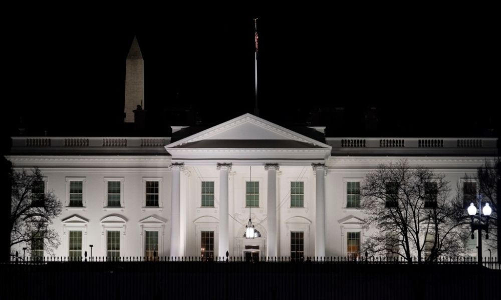 这是2022年2月21日在美国首都华盛顿拍摄的白宫。(新华社记者刘杰摄)