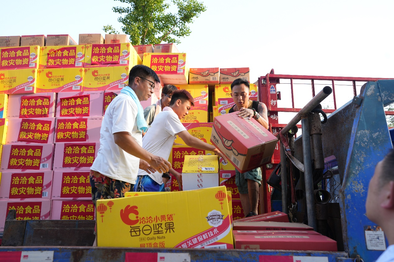 8月5日,洽洽食品携满车食品物资陆续抵达北京市房山区、门头沟区以及河北涿州,并迅速在当地受灾严重的村庄开展驰援工作与救灾物资发放,为抗洪救灾的一线工作者及受灾群众发放捐赠物资,为一线救灾工作尽最大的努力。
