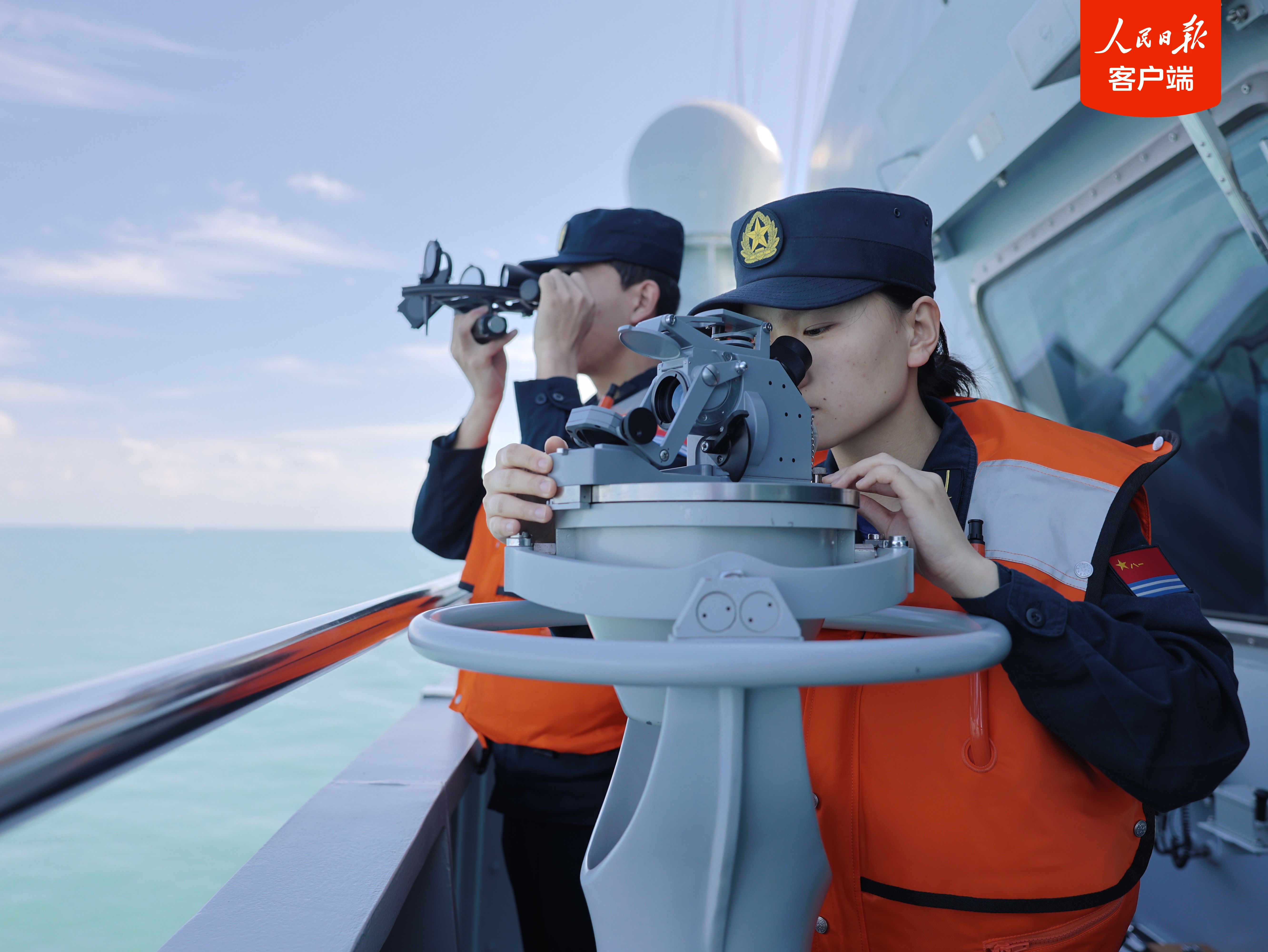 四川舰官兵正在观察方位。 霍阳柯 摄