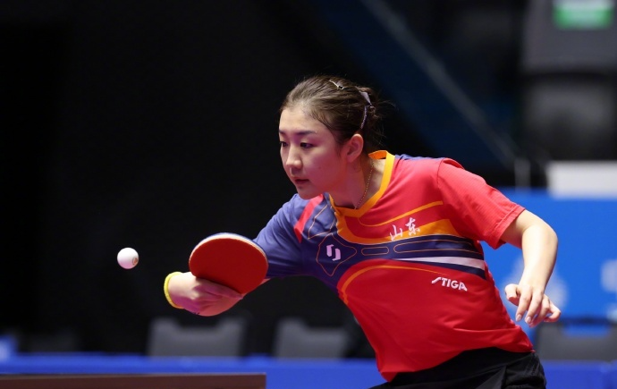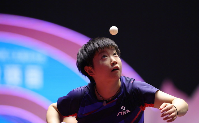 11月13日,第十五届全国运动会乒乓球项目在澳门银河综艺馆展开女单1/4决赛的争夺,黑龙江队的王曼昱战胜辽宁队的王艺迪 ,晋级女单四强。